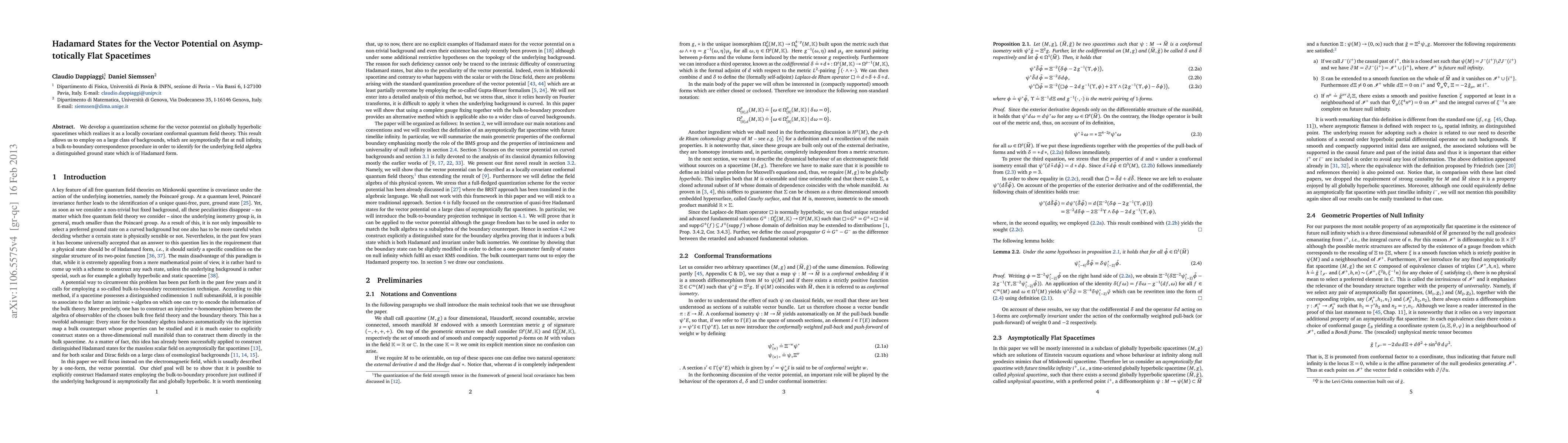 We develop a quantization scheme for the vector potential on globally hyperbolic spacetimes which realizes it as a locally covariant conformal quantum field theory. This result allows us to employ on a large class of backgrounds, which are asymptotically flat at null infinity, a bulk-to-boundary correspondence procedure in order to identify for the underlying field algebra a distinguished ground state which is of Hadamard form.