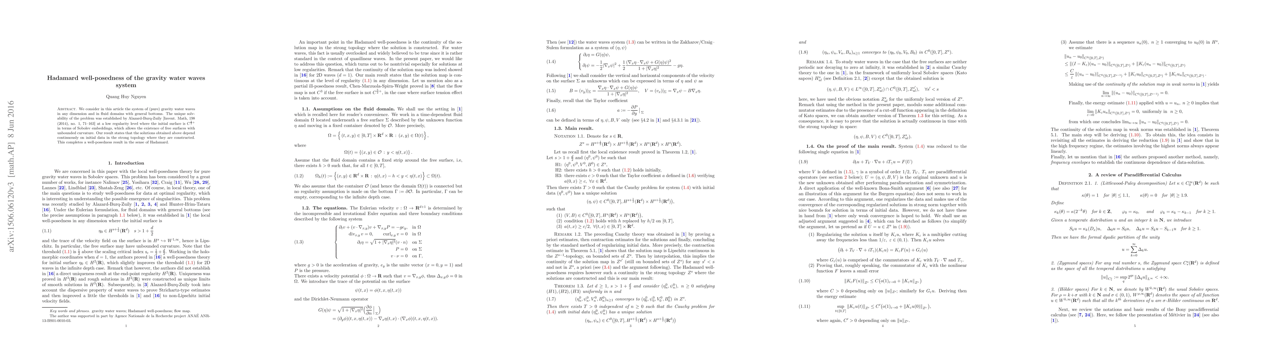 This paper establishes the Hadamard well-posedness of the gravity water waves system in any dimension, confirming continuous dependence of the solutions on initial data in the strong topology. This extends previous results by Alazard-Burq-Zuily to handle initial surfaces with unbounded curvature.
