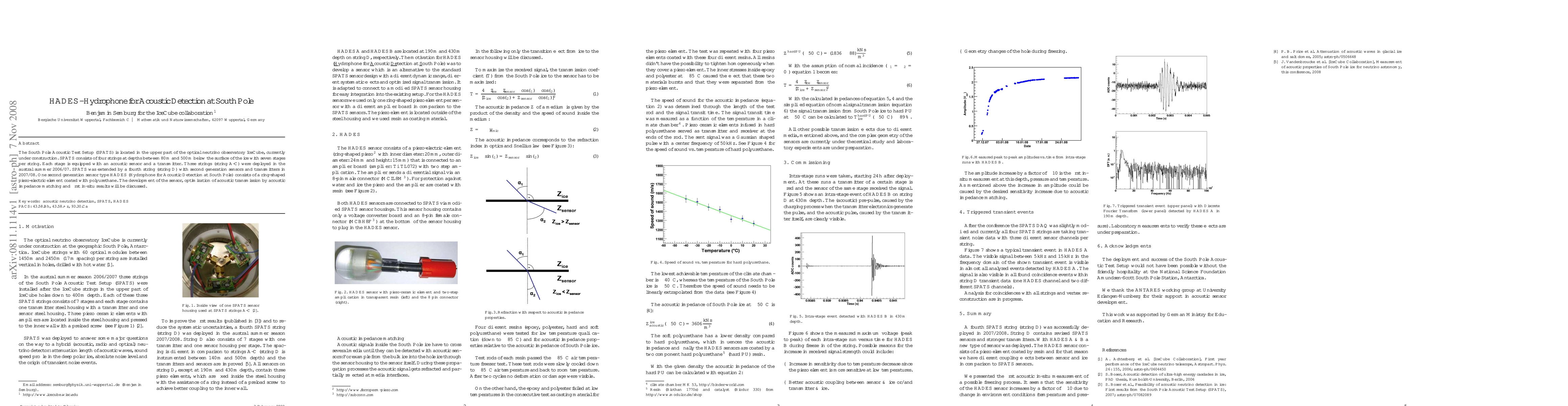 The HADES hydrophone, deployed in the South Pole Acoustic Test Setup (SPATS) within the IceCube observatory, utilizes a ring-shaped piezo-electric element for acoustic detection. Initial results from the second-generation sensors, including HADES, demonstrate optimized acoustic transmission through impedance matching.