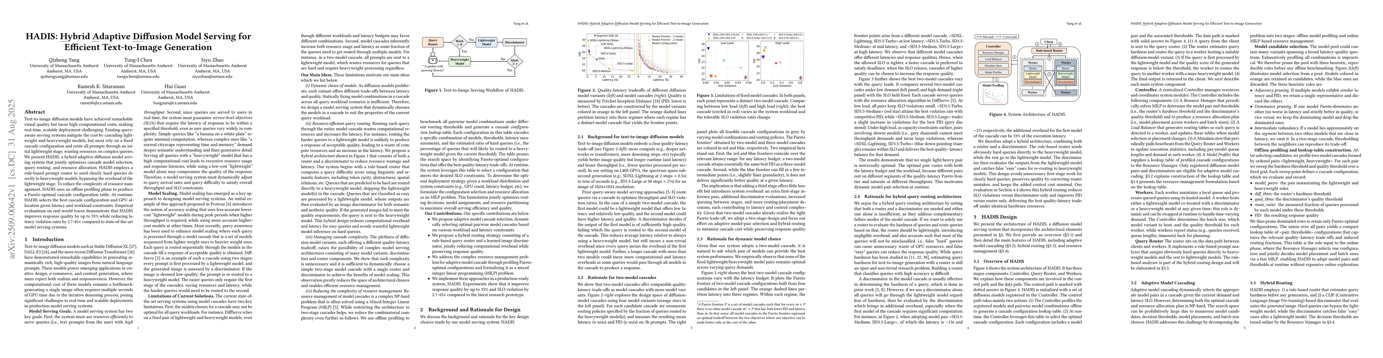 Text-to-image diffusion models have achieved remarkable visual quality but incur high computational costs, making real-time, scalable deployment challenging. Existing query-aware serving systems mitigate the cost by cascading lightweight and heavyweight models, but most rely on a fixed cascade configuration and route all prompts through an initial lightweight stage, wasting resources on complex queries. We present HADIS, a hybrid adaptive diffusion model serving system that jointly optimizes cascade model selection, query routing, and resource allocation. HADIS employs a rule-based prompt router to send clearly hard queries directly to heavyweight models, bypassing the overhead of the lightweight stage. To reduce the complexity of resource management, HADIS uses an offline profiling phase to produce a Pareto-optimal cascade configuration table. At runtime, HADIS selects the best cascade configuration and GPU allocation given latency and workload constraints. Empirical evaluations on real-world traces demonstrate that HADIS improves response quality by up to 35% while reducing latency violation rates by 2.7-45$\times$ compared to state-of-the-art model serving systems.