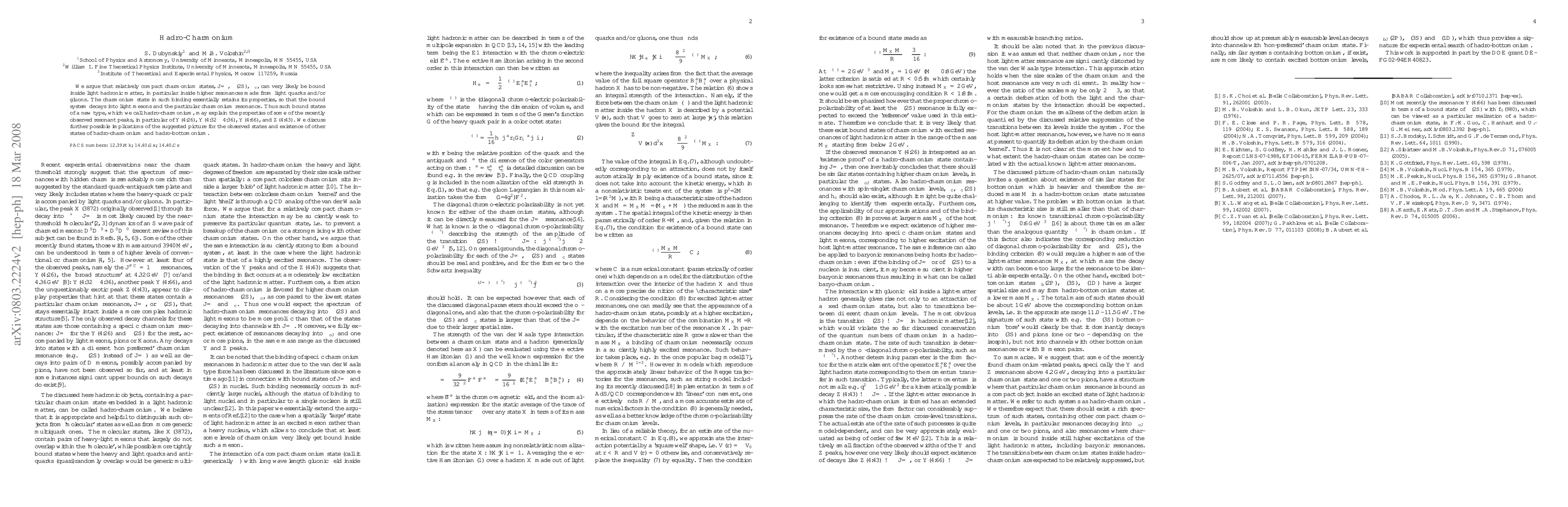 We argue that relatively compact charmonium states, $J/\psi$, $\psi(2S)$, $\chi_c$, can very likely be bound inside light hadronic matter, in particular inside higher resonances made from light quarks and/or gluons. The charmonium state in such binding essentially retains its properties, so that the bound system decays into light mesons and the particular charmonium resonance. Thus such bound states of a new type, which we call hadro-charmonium, may explain the properties of some of the recently observed resonant peaks, in particular of Y(4.26), Y(4.32-4.36), Y(4.66), and Z(4.43). We discuss further possible implications of the suggested picture for the observed states and existence of other states of hadro-charmonium and hadro-bottomonium.