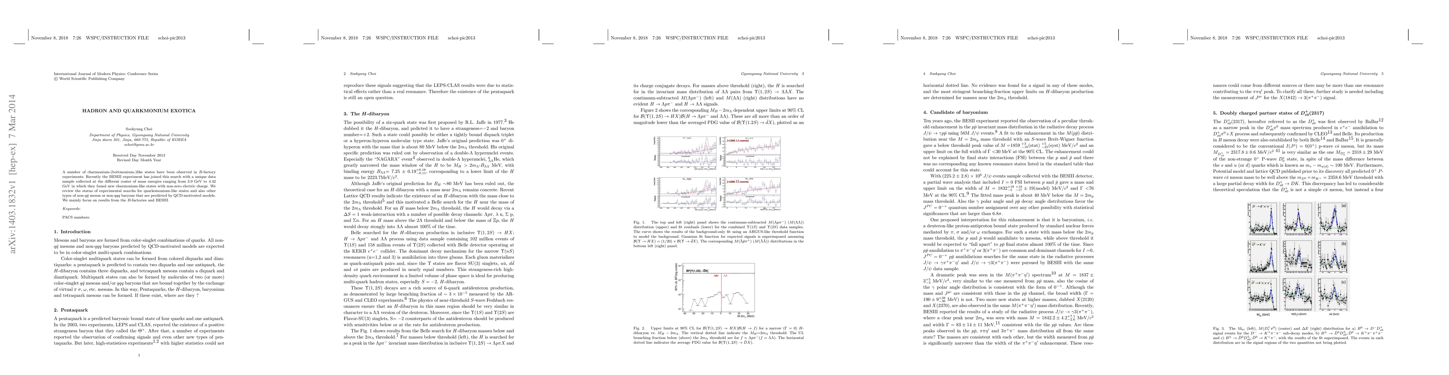 A number of charmonium-(bottmonium-)like states have been observed in $B$-factory experiments. Recently the BESIII experiment has joined this search with a unique data sample collected at the different center of mass energies ranging from 3.9 GeV to 4.42 GeV in which they found new charmonium-like states with non-zero electric charge. We review the status of experimental searchs for quarkomonium-like states and also other types of non-$q\bar{q}$ meson or non-$qqq$ baryons that are predicted by QCD-motivated models. We mainly focus on results from the $B$-factories and BESIII.