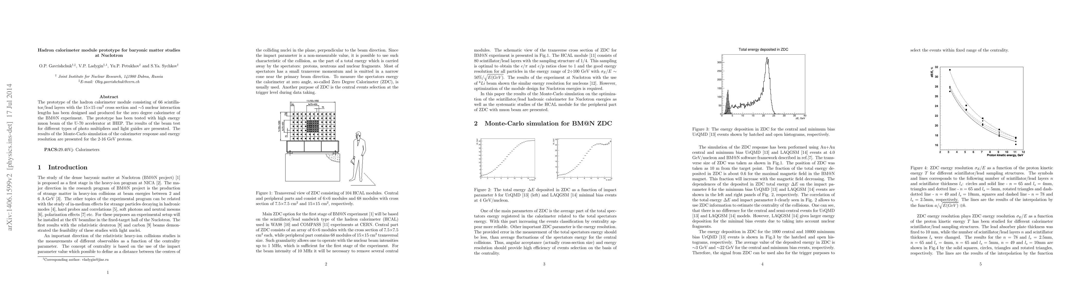 The prototype of the hadron calorimeter module consisting of 66 scintillator/lead layers with the 15x15 cm^2 cross section and 5 nuclear interaction lengths has been designed and produced for the zero degree calorimeter of the BM@N experiment. The prototype has been tested with high energy muon beam of the U-70 accelerator at IHEP. The results of the beam test for different types of photo multipliers and light guides are presented. The results of the Monte-Carlo simulation of the calorimeter response and energy resolution are presented for the 2-16 GeV protons.