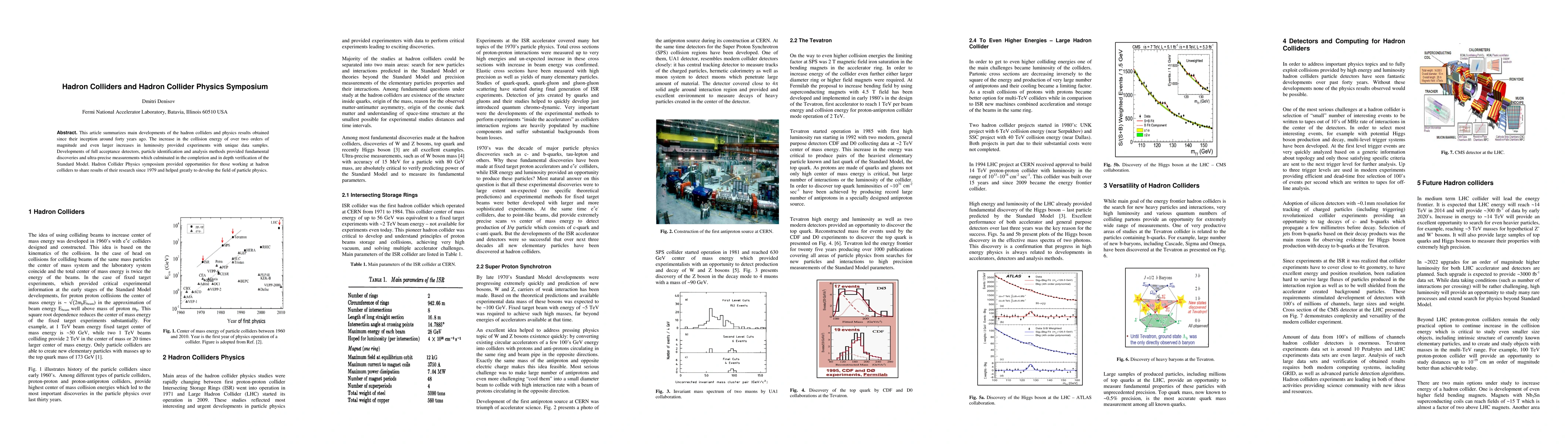 This article summarizes main developments of the hadron colliders and physics results obtained since their inception around forty years ago. The increase in the collision energy of over two orders of magnitude and even larger increases in luminosity provided experiments with unique data samples. Developments of full acceptance detectors, particle identification and analysis methods provided fundamental discoveries and ultra-precise measurements which culminated in the completion and in depth verification of the Standard Model. Hadron Collider Physics symposium provided opportunities for those working at hadron colliders to share results of their research since 1979 and helped greatly to develop the field of particle physics.