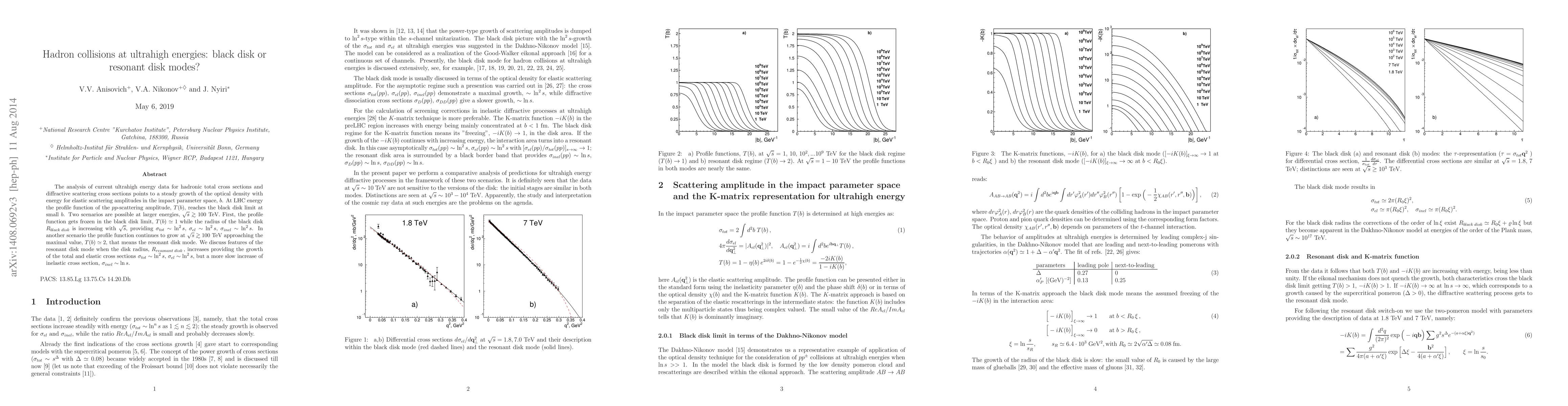 The analysis of current ultrahigh energy data for hadronic total cross sections and diffractive scattering cross sections points to a steady growth of the optical density with energy for elastic scattering amplitudes in the impact parameter space, $b$. At LHC energy the profile function of the $pp$-scattering amplitude, $T(b)$, reaches the black disk limit at small $b$. Two scenarios are possible at larger energies, $\sqrt{s}\ga 100$ TeV. First, the profile function gets frozen in the black disk limit, $T(b)\simeq 1$ while the radius of the black disk $R_{black\;disk}$ is increasing with $\sqrt s$, providing $\sigma_{tot}\sim \ln^2s$, $\sigma_{el}\sim \ln^2s$, $\sigma_{inel}\sim \ln^2s$. In another scenario the profile function continues to grow at $\sqrt{s}\ga 100$ TeV approaching the maximal value, $T(b)\simeq 2$, that means the resonant disk mode. We discuss features of the resonant disk mode when the disk radius, $R_{resonant\;disk}\,$, increases providing the growth of the total and elastic cross sections $\sigma_{tot}\sim \ln^2s$, $\sigma_{el}\sim \ln^2s$, but a more slow increase of inelastic cross section, $\sigma_{inel}\sim \ln s$.