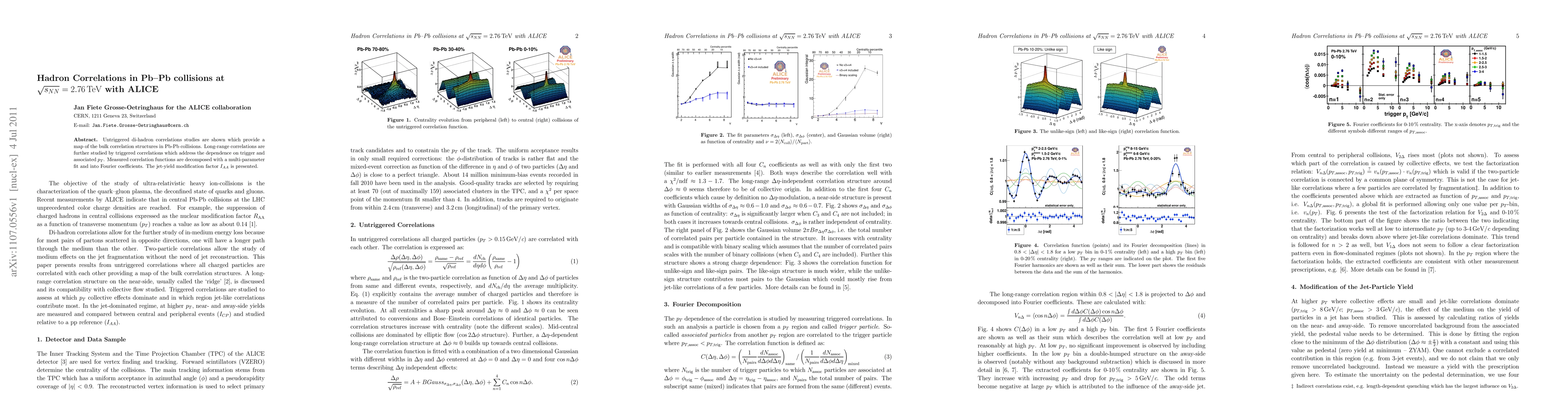 Untriggered di-hadron correlations studies are shown which provide a map of the bulk correlation structures in Pb-Pb collisions. Long-range correlations are further studied by triggered correlations which address the dependence on trigger and associated pT. Measured correlation functions are decomposed with a multi-parameter fit and into Fourier coefficients. The jet-yield modification factor I_AA is presented.