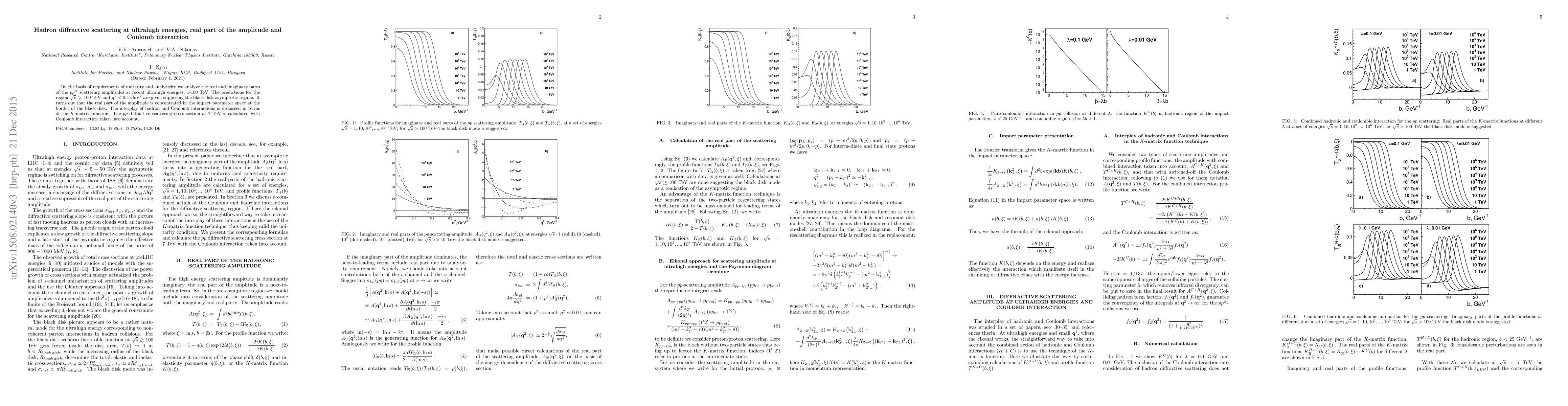 On the basis of requirements of unitarity and analyticity we analyze the real and imaginary parts of the $pp^\pm$ scattering amplitudes at recent ultrahigh energies, 1-100 TeV. The predictions for the region $\sqrt s > 100$ TeV and ${\bf q}^2<0.4$ GeV$^2$ are given supposing the black disk asymptotic regime. It turns out that the real part of the amplitude is concentrated in the impact parameter space at the border of the black disk. The interplay of hadron and Coulomb interactions is discussed in terms of the $K$-matrix function. The $pp$ diffractive scattering cross section at 7 TeV is calculated with Coulomb interaction taken into account.