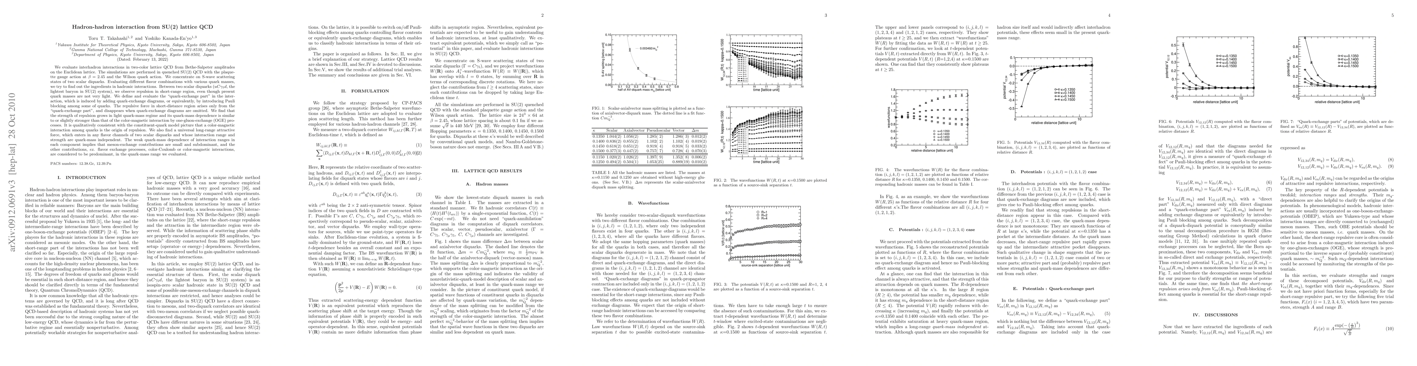 We evaluate interhadron interactions in two-color lattice QCD from Bethe-Salpeter amplitudes on the Euclidean lattice. The simulations are performed in quenched SU(2) QCD with the plaquette gauge action at $\beta = 2.45$ and the Wilson quark action. We concentrate on S-wave scattering states of two scalar diquarks. Evaluating different flavor combinations with various quark masses, we try to find out the ingredients in hadronic interactions. Between two scalar diquarks ($u C\gamma_5 d$, the lightest baryon in SU(2) system), we observe repulsion in short-range region, even though present quark masses are not very light. We define and evaluate the "quark-exchange part" in the interaction, which is induced by adding quark-exchange diagrams, or equivalently, by introducing Pauli blocking among some of quarks. The repulsive force in short-distance region arises only from the "quark-exchange part", and disappears when quark-exchange diagrams are omitted. We find that the strength of repulsion grows in light quark-mass regime and its quark-mass dependence is similar to or slightly stronger than that of the color-magnetic interaction by one-gluon-exchange (OGE) processes. It is qualitatively consistent with the constituent-quark model picture that a color-magnetic interaction among quarks is the origin of repulsion. We also find a universal long-range attractive force, which enters in any flavor channels of two scalar diquarks and whose interaction range and strength are quark-mass independent. The weak quark-mass dependence of interaction ranges in each component implies that meson-exchange contributions are small and subdominant, and the other contributions, {\it ex.} flavor exchange processes, color-Coulomb or color-magnetic interactions, are considered to be predominant, in the quark-mass range we evaluated.