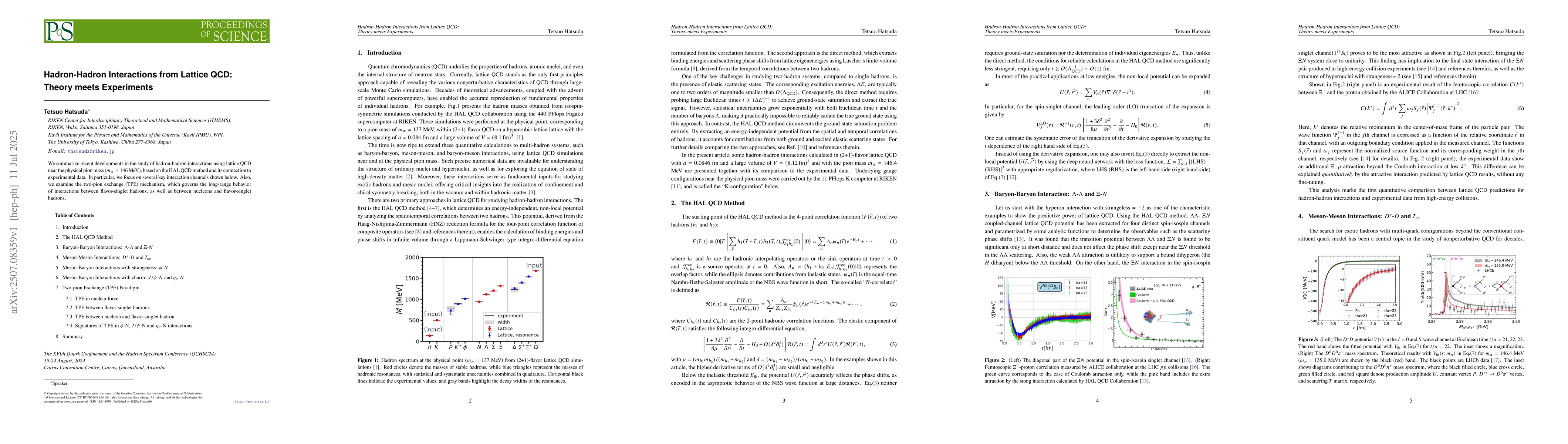 The paper presents detailed lattice QCD calculations and HAL QCD method applications to various hadron-hadron interaction channels, providing a comprehensive comparison with experimental data.