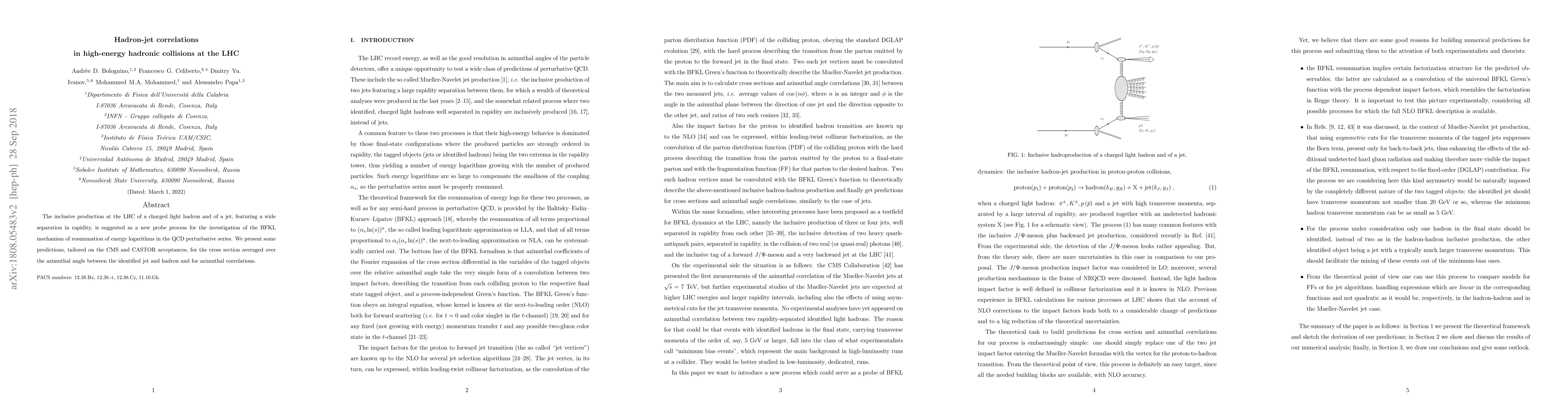 This paper explores the inclusive production of a charged light hadron and a jet in high-energy LHC collisions, proposing it as a new probe for investigating the BFKL mechanism. Predictions are provided for cross-section averages and azimuthal correlations, tailored to CMS and CASTOR detector acceptances.