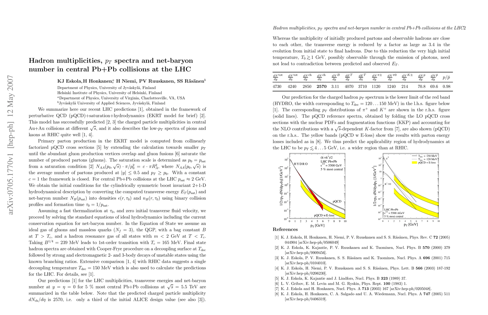 We compute the initial energy density and net baryon number density in 5% most central Pb+Pb collisions at $\sqrt s=5.5$ TeV from pQCD + (final state) saturation, and describe the evolution of the produced system with boost-invariant transversely expanding hydrodynamics. In addition to the total multiplicity at midrapidity, we give predictions for the multiplicity of charged hadrons, pions, kaons and (anti)protons, for the total transverse energy and net-baryon number, as well as for the $p_T$-spectrum of charged hadrons, pions and kaons. We also predict the region of applicability of hydrodynamics by comparing these results with high-$p_T$ hadron spectra computed from pQCD and energy losses.