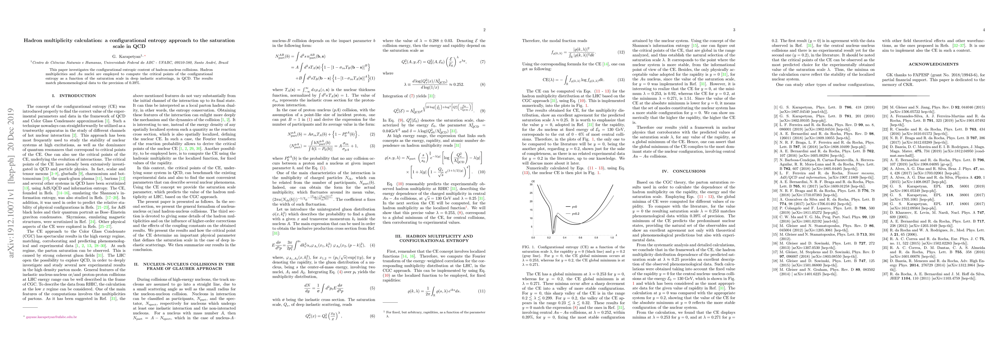 This paper uses a configurational entropy approach to calculate hadron multiplicity in QCD, finding critical points in hadron-nucleus collisions that match phenomenological data with 0.39% precision. The study focuses on the saturation scale in deep inelastic scatterings.
