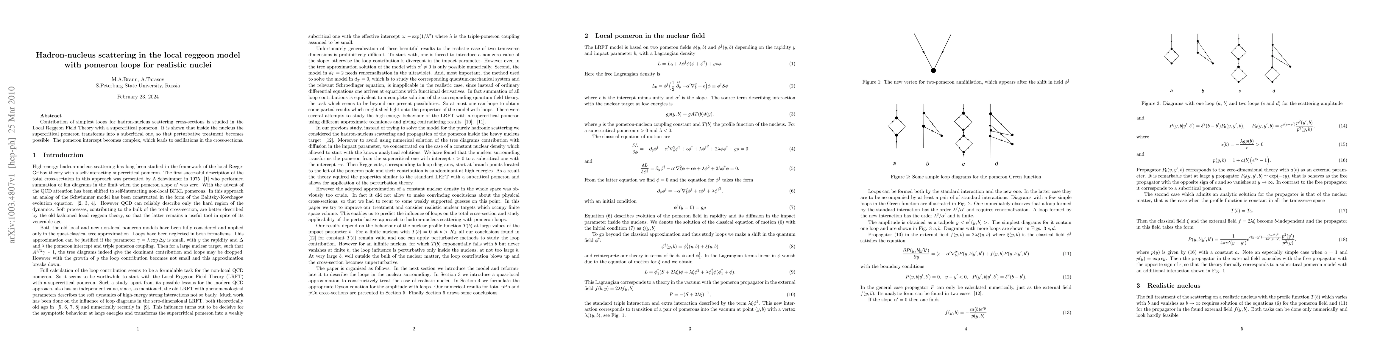 Contribution of simplest loops for hadron-nucleus scattering cross-sections is studied in the Local Reggeon Field Theory with a supercritical pomeron. It is shown that inside the nucleus the supercritical pomeron transforms into a subcritical one, so that perturbative treatment becomes possible. The pomeron intercept becomes complex, which leads to oscillations in the cross-sections.