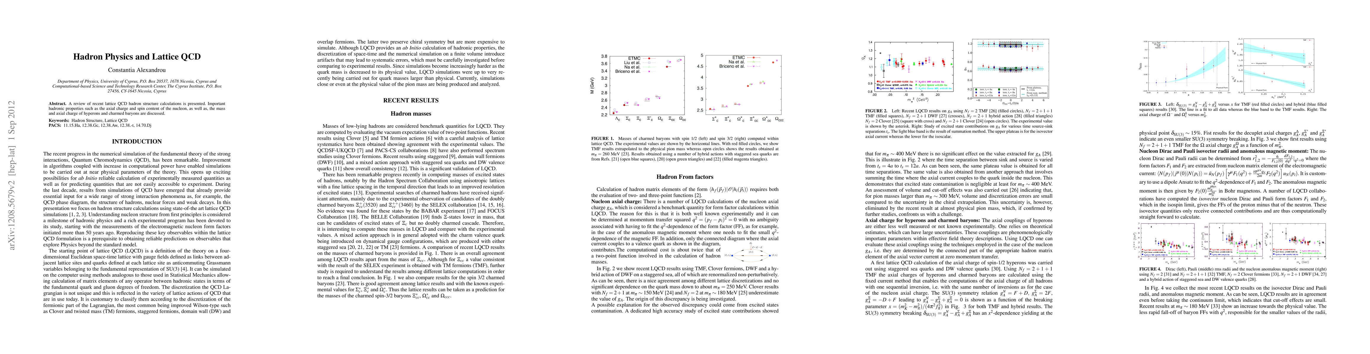 This paper reviews recent lattice QCD calculations on hadron structure, focusing on important properties like the axial charge and spin content of the nucleon, and the mass and axial charge of hyperons and charmed baryons.