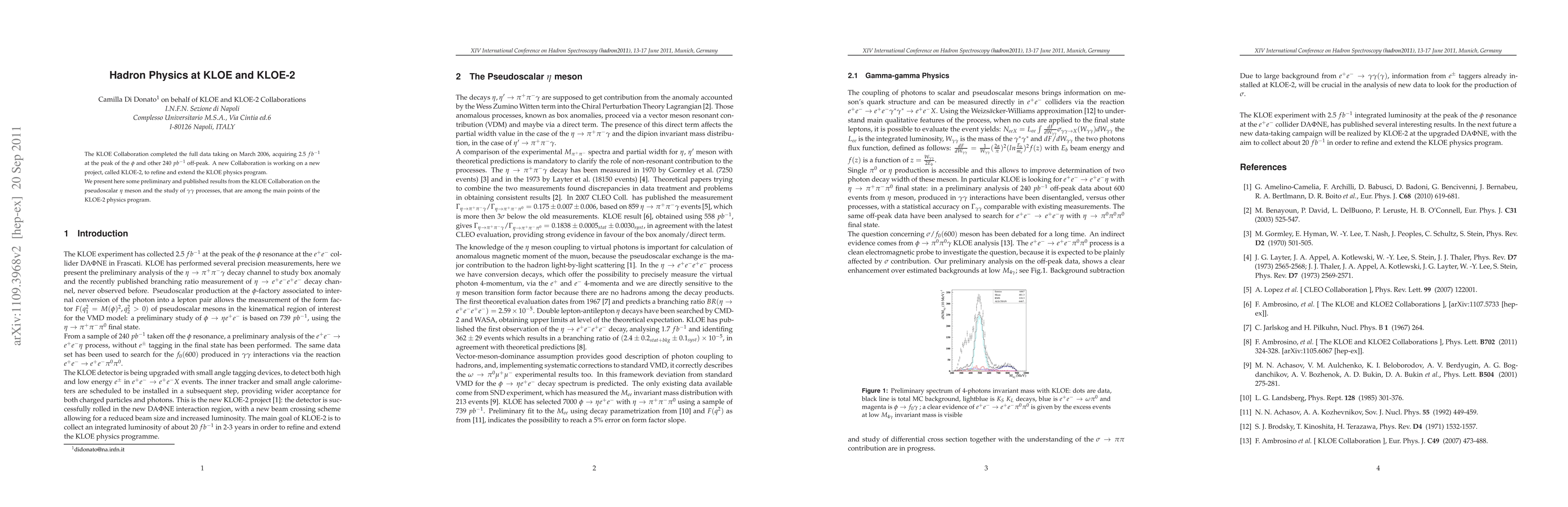 The KLOE Collaboration concluded data collection in 2006, focusing on hadron physics and the \phi meson, while KLOE-2 aims to extend these studies. Preliminary results from KLOE include insights on the pseudoscalar \eta meson and \gamma \gamma processes, which will be further investigated in KLOE-2.