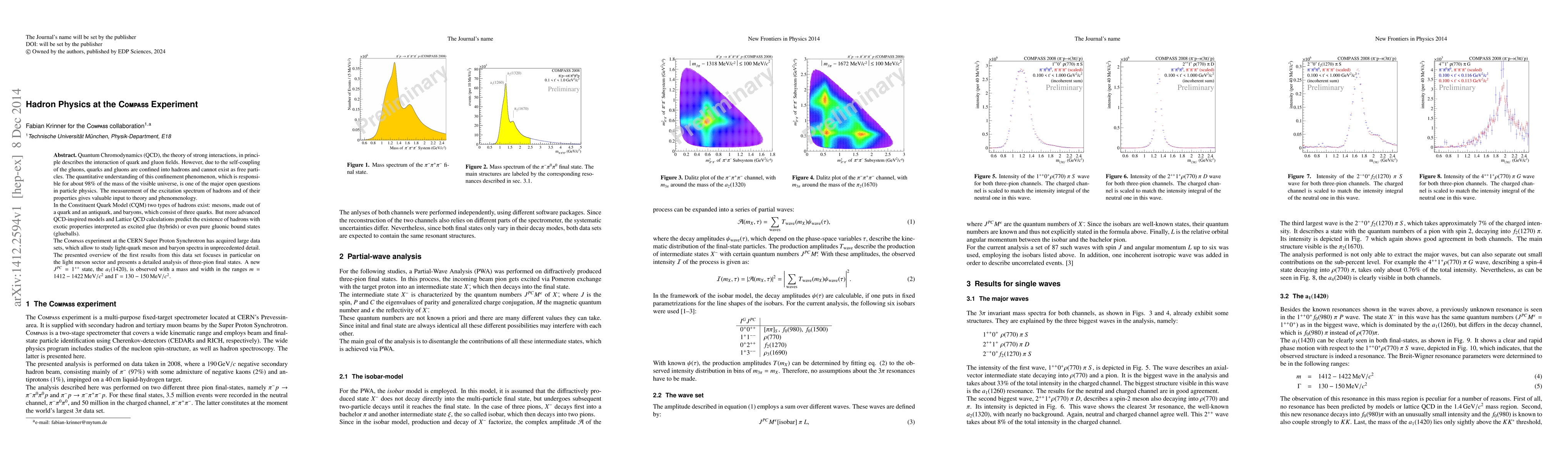The COMPASS experiment at CERN has analyzed large datasets to study light-quark meson and baryon spectra in detail. A new $J^{PC} = 1^{++}$ state, the $a_1(1420)$, was observed with a mass range of 1412-1422 MeV/c² and width range of 130-150 MeV/c², contributing to the understanding of hadron confinement in Quantum Chromodynamics.