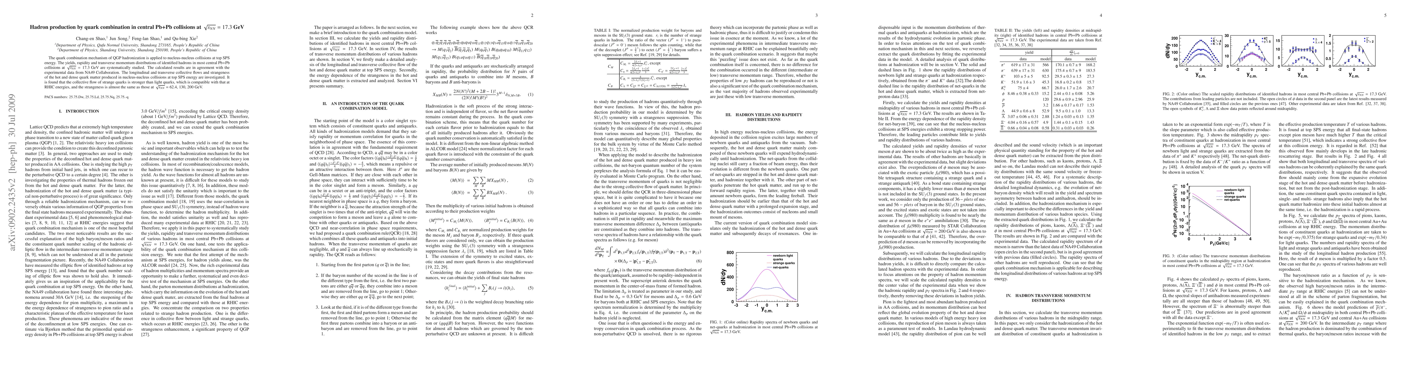 Researchers studied hadron production in Pb+Pb collisions at 17.3 GeV, finding agreement with experimental data and insight into the collective flow and strangeness of quark matter produced.