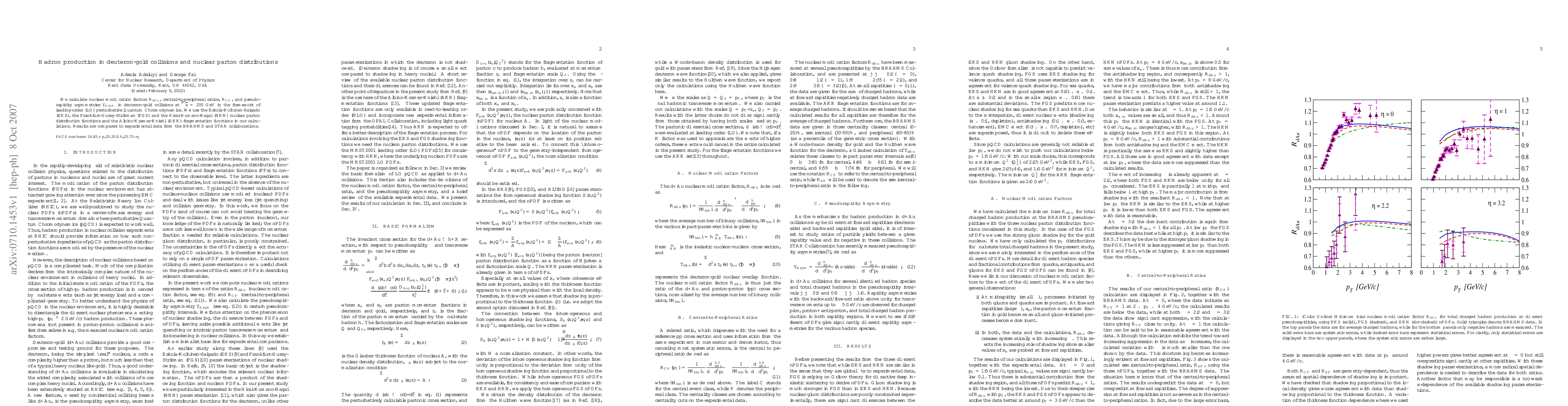 This research paper calculates hadron production in deuteron-gold collisions using different nuclear parton distribution functions and compares the results to experimental data from BRAHMS and STAR collaborations.
