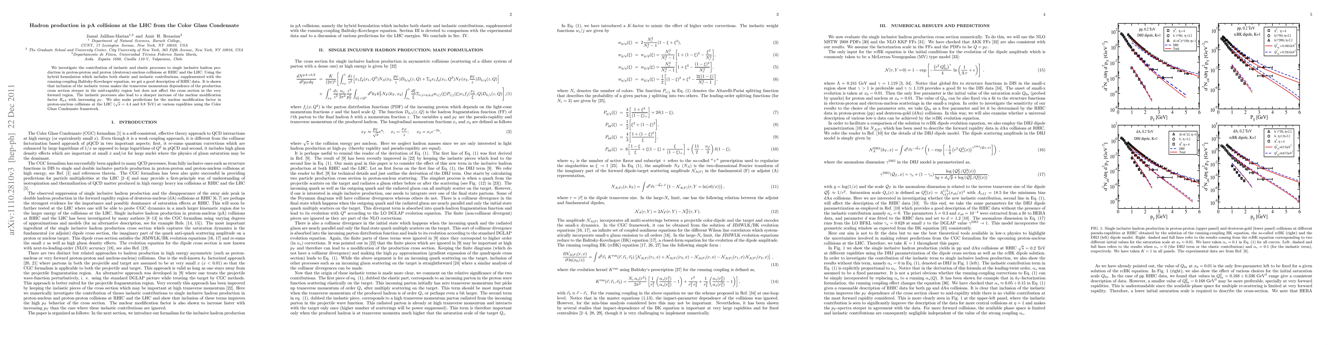 This paper explores the role of inelastic and elastic processes in hadron production during proton-proton and proton-nucleus collisions at RHIC and LHC, using a hybrid formulation and the Balitsky-Kovchegov equation. It finds that inelastic terms steepen the transverse momentum dependence in mid-rapidity but do not affect forward region cross sections, and predict the nuclear modification factor for LHC proton-nucleus collisions.