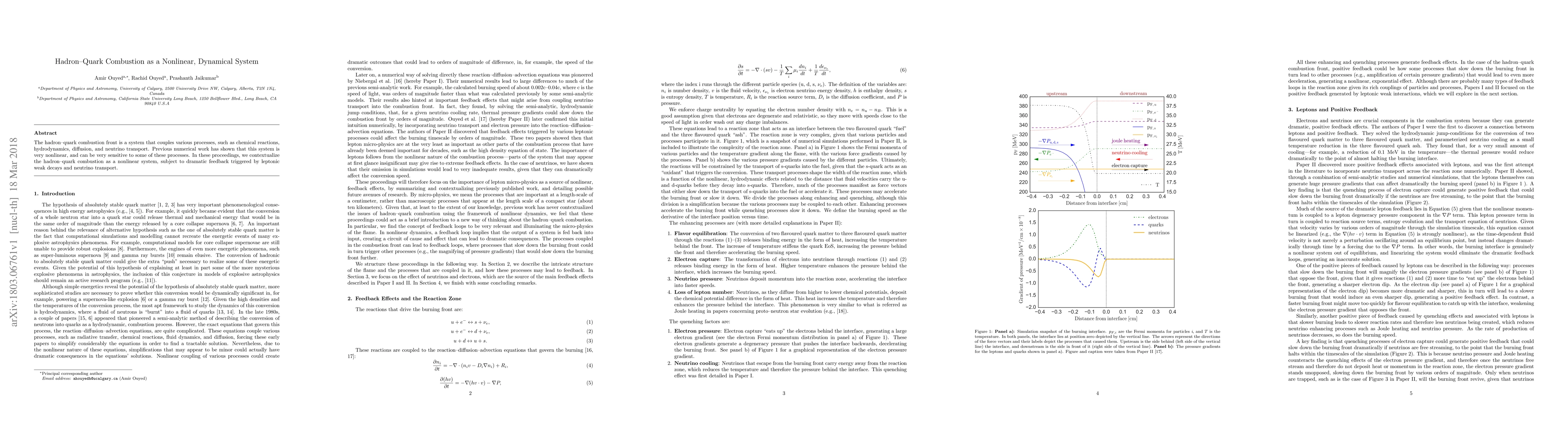 The hadron-quark combustion front is a system that couples various processes, such as chemical reactions, hydrodynamics, diffusion, and neutrino transport. Previous numerical work has shown that this system is very nonlinear, and can be very sensitive to some of these processes. In these proceedings, we contextualize the hadron-quark combustion as a nonlinear system, subject to dramatic feedback triggered by leptonic weak decays and neutrino transport.