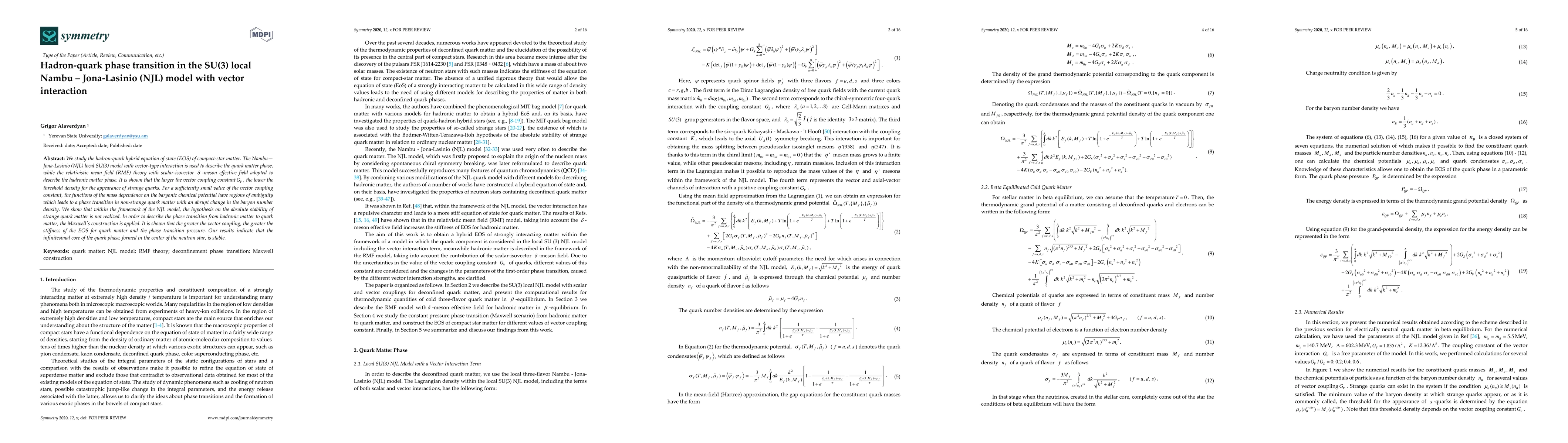 This paper investigates the hadron-quark phase transition in compact-star matter using the SU(3) Nambu-Jona-Lasinio model with vector interaction. It finds that higher vector coupling lowers the threshold for strange quark appearance and leads to a phase transition in non-strange quark matter, challenging the absolute stability of strange quark matter.