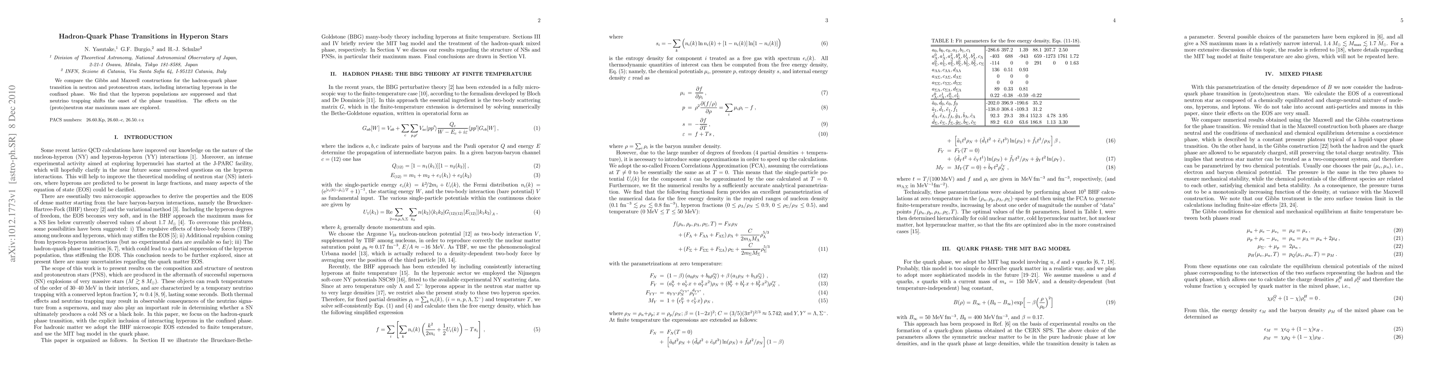 This paper examines the hadron-quark phase transition in neutron stars, comparing Gibbs and Maxwell constructions and considering hyperon interactions. It finds that hyperon populations are reduced, and neutrino trapping delays the transition, impacting the maximum mass of (proto)neutron stars.