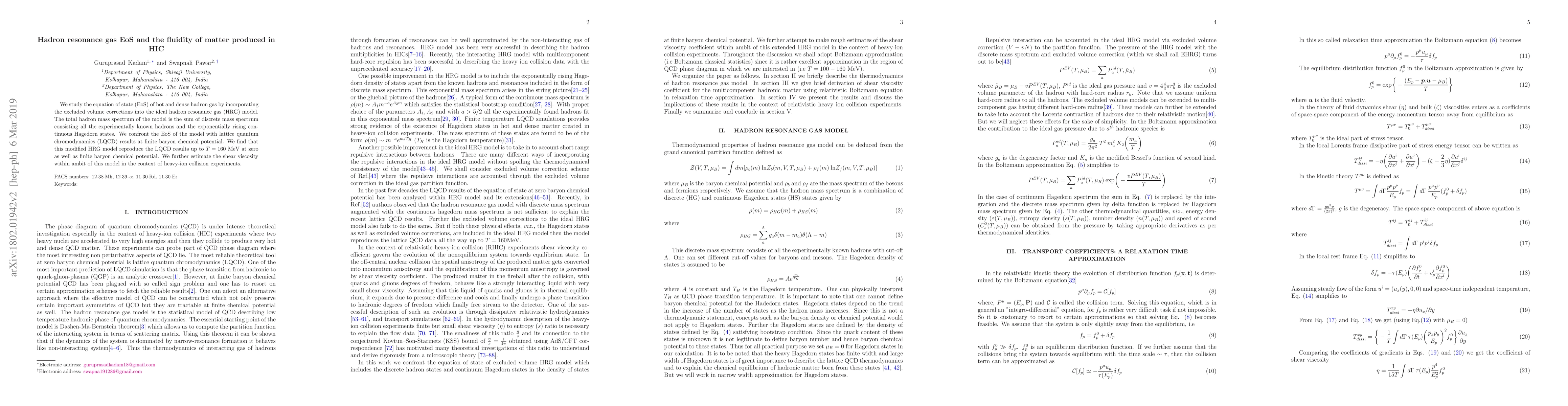 We study the equation of state (EoS) of the hot and dense hadron gas by incorporating the excluded volume corrections into the ideal hadron resonance gas model (HRG). The total hadron mass spectrum of the model is the sum of discrete mass spectrum consisting all the experimentally known hadrons and the exponentially rising continuous Hagedorn states. We confront the EoS of the model with lattice quantum chromodynamics (LQCD) results at finite baryon chemical potential. We find that this modified HRG model reproduce the LQCD results up to T = 160 MeV at zero as well as finite baryon chemical potential. We further estimate the shear viscosity coefficient within ambit of this model in the context of heavy-ion collision experiments.