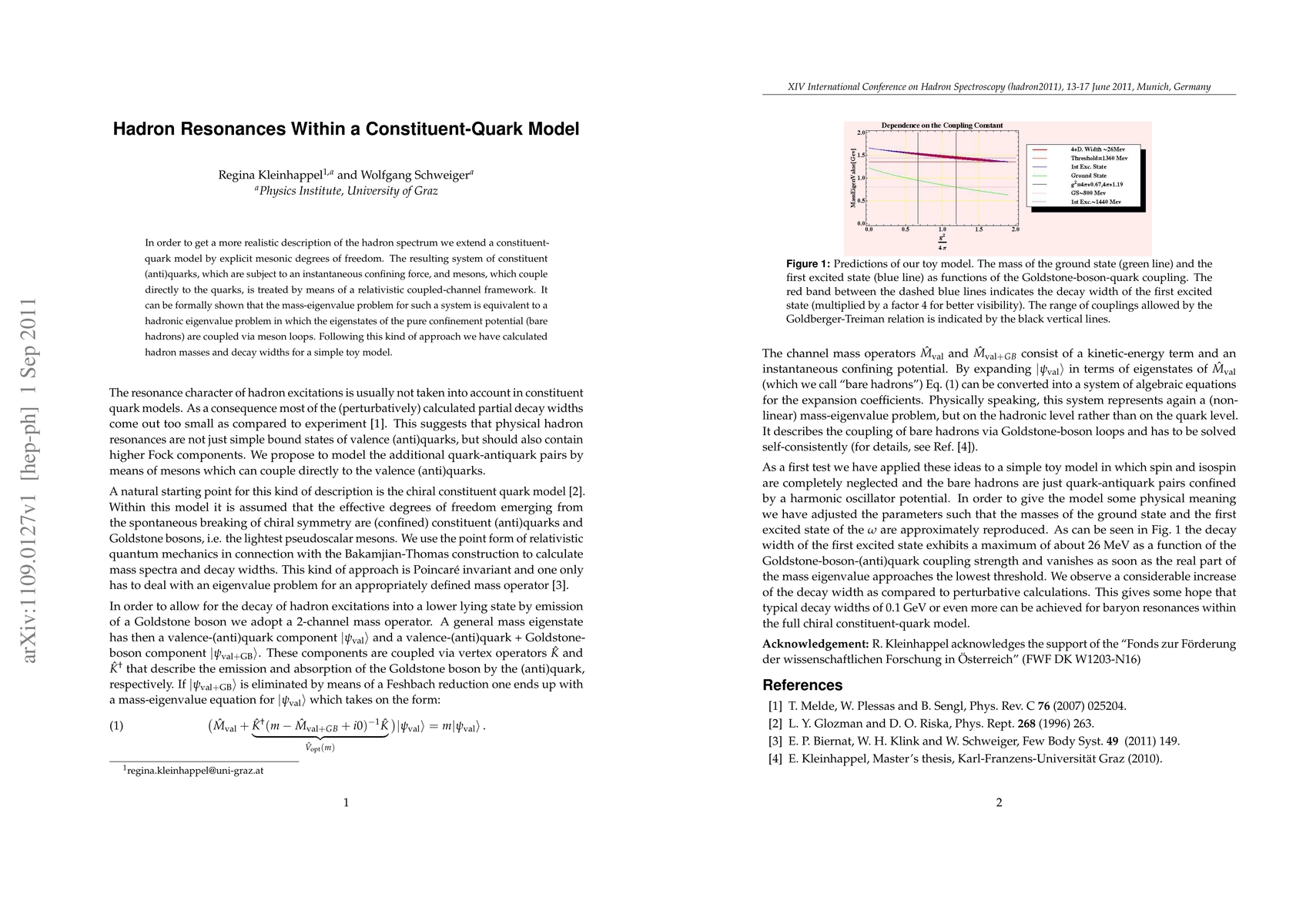 This paper extends a constituent-quark model to include explicit mesonic degrees of freedom, treating a system of constituent quarks and mesons within a relativistic coupled-channel framework. The study calculates hadron masses and decay widths, demonstrating the equivalence of the mass-eigenvalue problem to a hadronic eigenvalue problem involving meson loops.