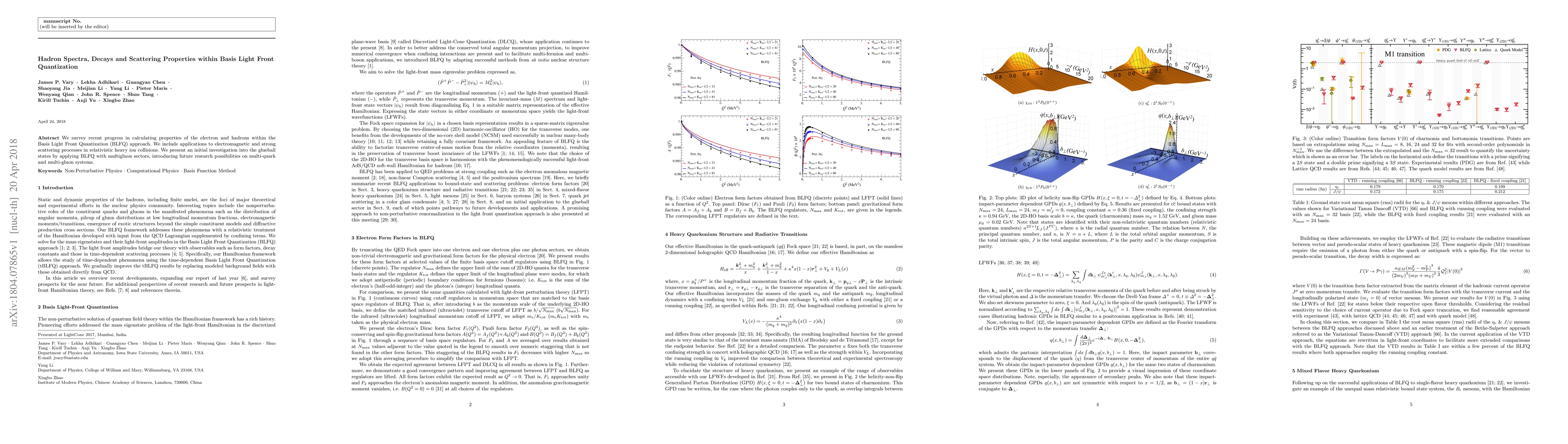 This paper reviews advancements in using Basis Light Front Quantization (BLFQ) to study electron and hadron properties, including electromagnetic and strong scattering in relativistic heavy ion collisions, and initiates research into glueball states with multigluon sectors, hinting at future explorations of multi-quark and multi-gluon systems.