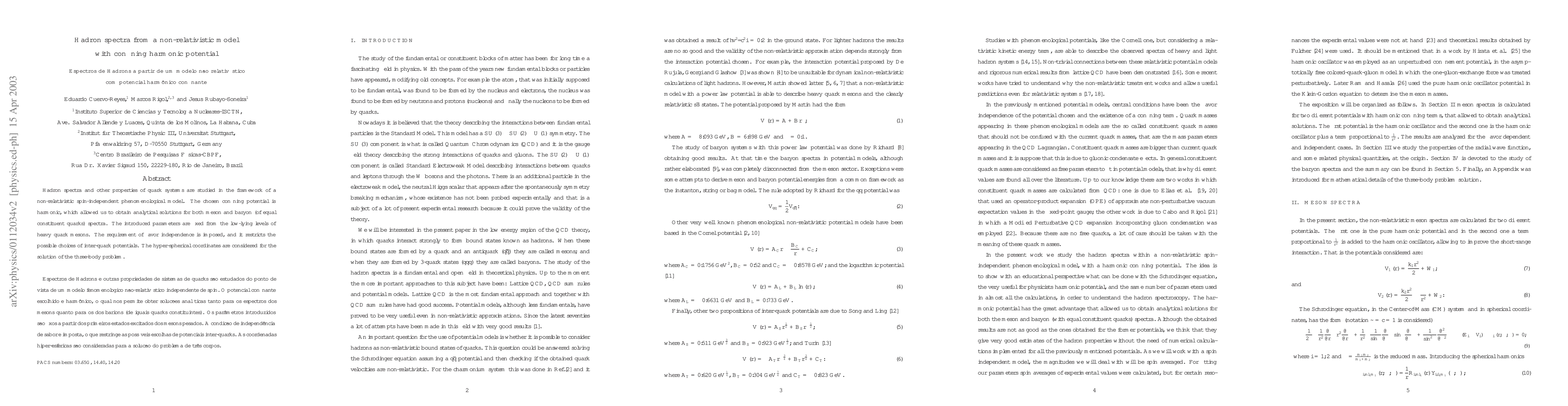 This study uses a non-relativistic model with a harmonic confining potential to analyze hadron spectra and quark systems, obtaining analytical solutions for meson and baryon spectra.