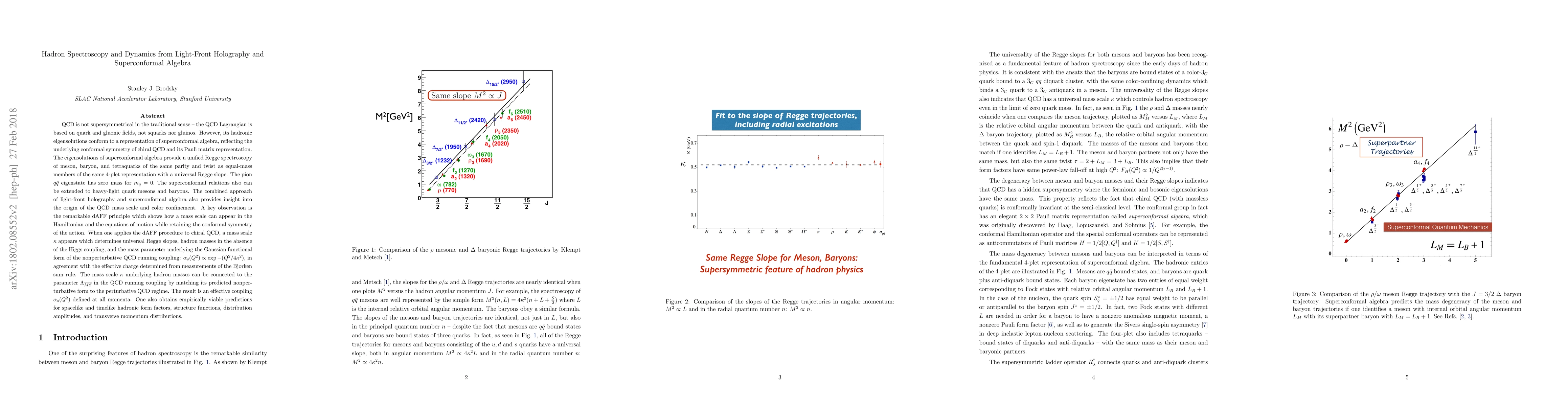 The combined approach of light-front holography and superconformal algebra provides a novel method for describing hadron spectroscopy and dynamics, including a mechanism for introducing the QCD mass scale while preserving conformal symmetry.