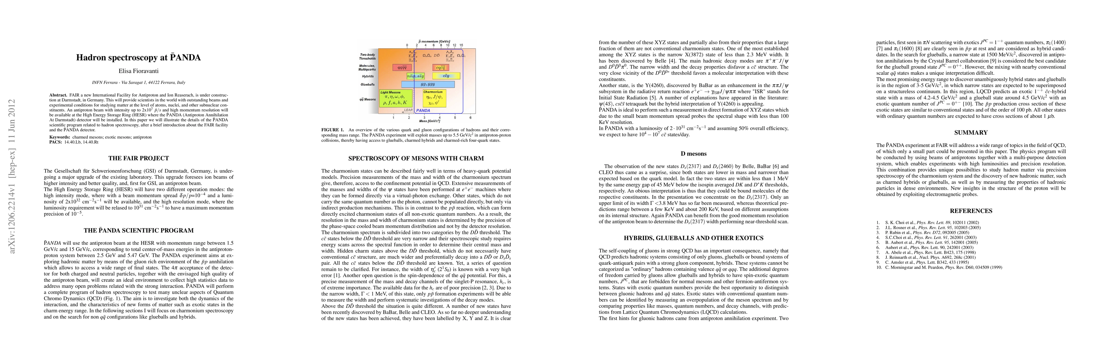 The paper discusses the PANDA detector at the future FAIR facility in Germany, highlighting its role in hadron spectroscopy using high-intensity antiproton beams. It outlines the detector's capabilities and the potential for significant contributions to understanding subnuclear particle behavior.