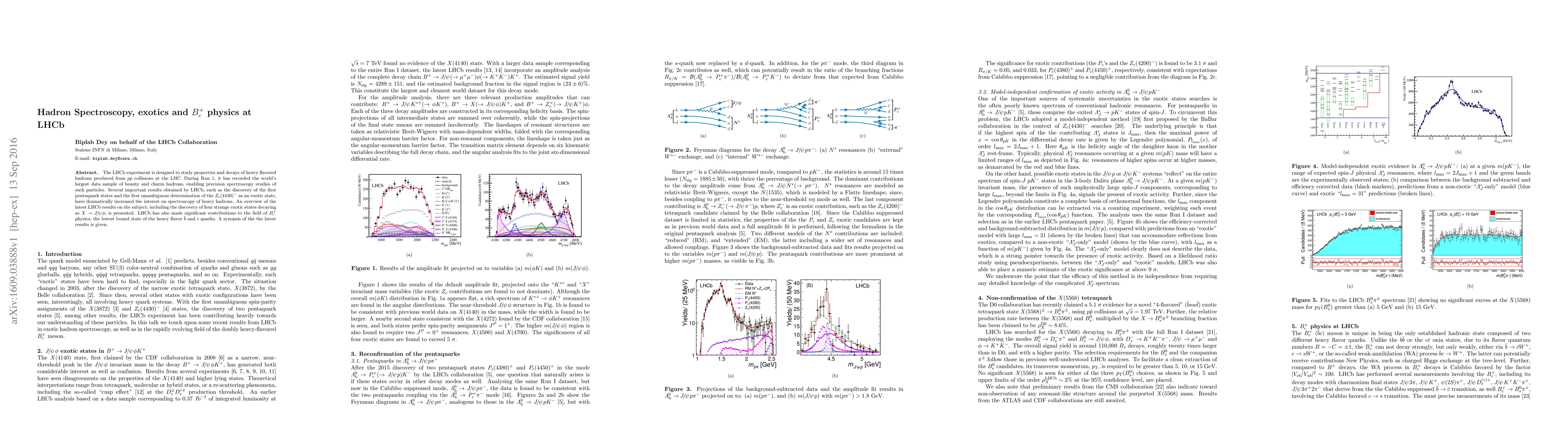The LHCb experiment has recorded the largest data sample of beauty and charm hadrons, leading to significant discoveries in hadron spectroscopy and exotic states, including pentaquarks and the $Z_c(4430)^-$. The experiment also made notable contributions to the study of $B_c^+$ mesons, the lowest bound state of $\bar{b}$ and $c$ quarks.