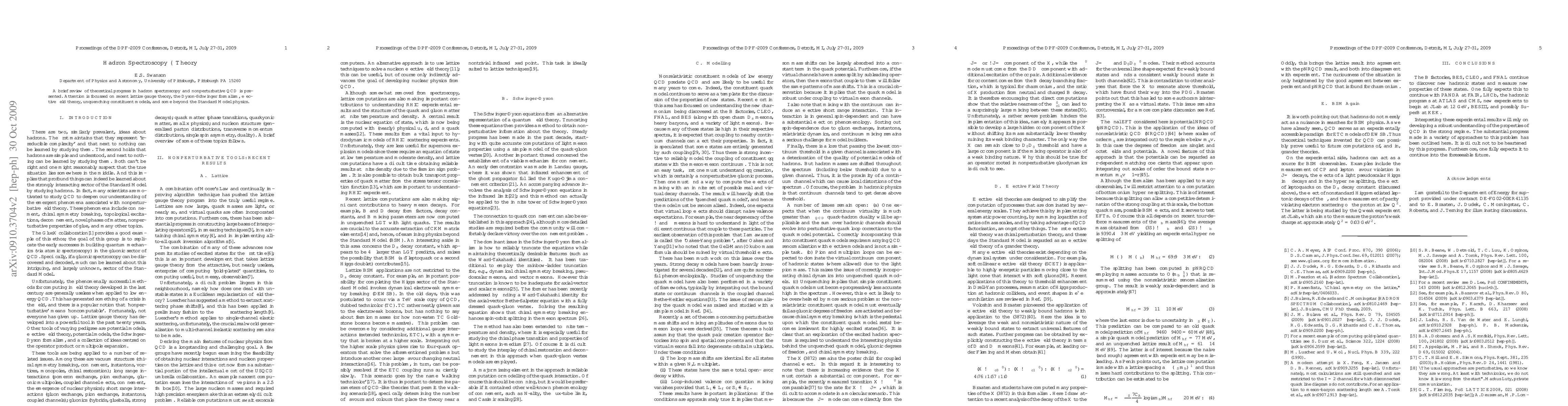 This paper reviews advancements in hadron spectroscopy theories, emphasizing recent developments in lattice gauge theory, Dyson-Schwinger formalism, effective field theory, unquenching constituent models, and implications of physics beyond the Standard Model.