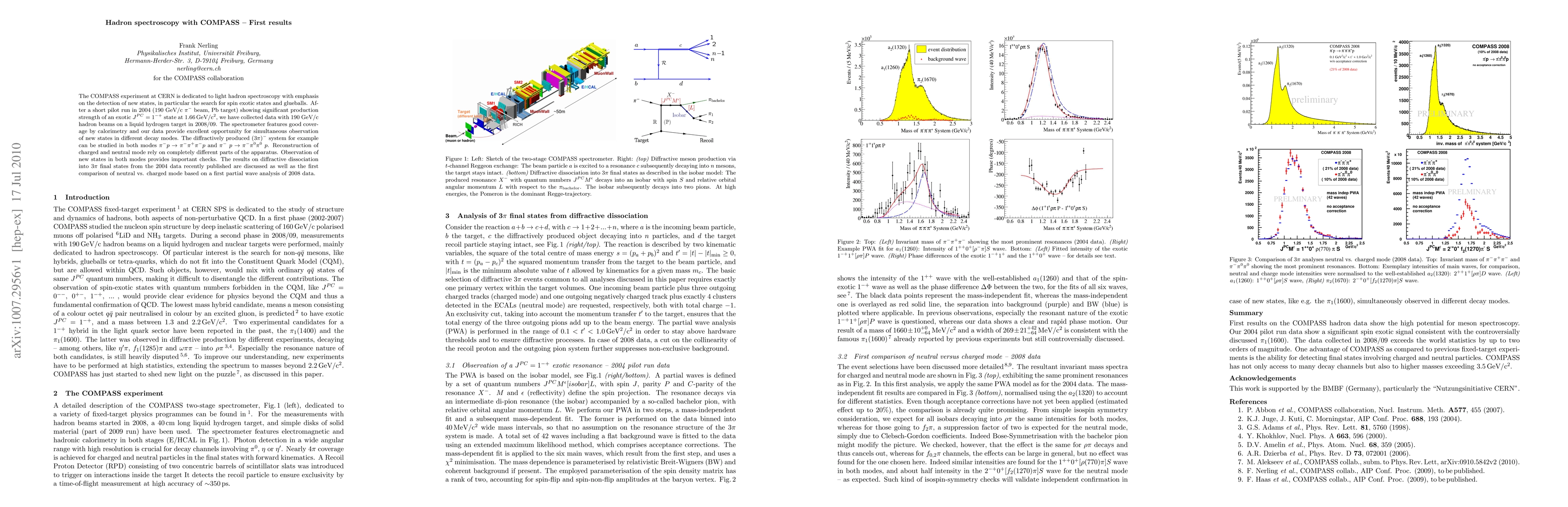 The COMPASS experiment at CERN is dedicated to light hadron spectroscopy with emphasis on the detection of new states, in particular the search for spin exotic states and glueballs. After a short pilot run in 2004 (190 GeV/c $\pi^{-}$ beam, Pb target) showing significant production strength of an exotic $J^{PC}=1^{-+}$ state at 1.66\,GeV/${\rm c^2}$, we have collected data with 190 GeV/c hadron beams on a liquid hydrogen target in 2008/09. The spectrometer features good coverage by calorimetry and our data provide excellent opportunity for simultaneous observation of new states in different decay modes. The diffractively produced $(3\pi)^{-}$ system for example can be studied in both modes $\pi^{-}p \rightarrow \pi^{-}\pi^{+}\pi^{-}p$ and $\pi^{-}~p \rightarrow \pi^{-}\pi^{0}\pi^{0}~p$. Reconstruction of charged and neutral mode rely on completely different parts of the apparatus. Observation of new st ates in both modes provides important checks. The results on diffractive dissociation into 3$\pi$ final states from the 2004 data recently published are discussed as well as the first comparison of neutral vs. charged mode based on a first partial wave analysis of 2008 data.