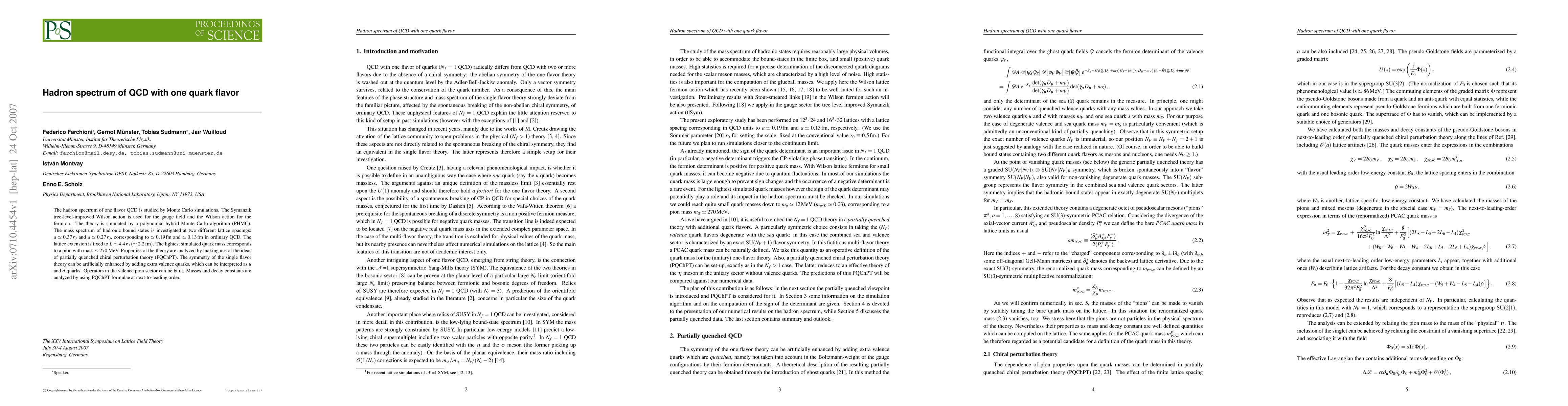 This study uses Monte Carlo simulations with Symanzik tree-level-improved Wilson action and Wilson fermion action to analyze the hadron spectrum in one-flavor QCD. The research investigates the mass spectrum at two lattice spacings and employs partially quenched chiral perturbation theory (PQChPT) to examine symmetry, masses, and decay constants of the system.