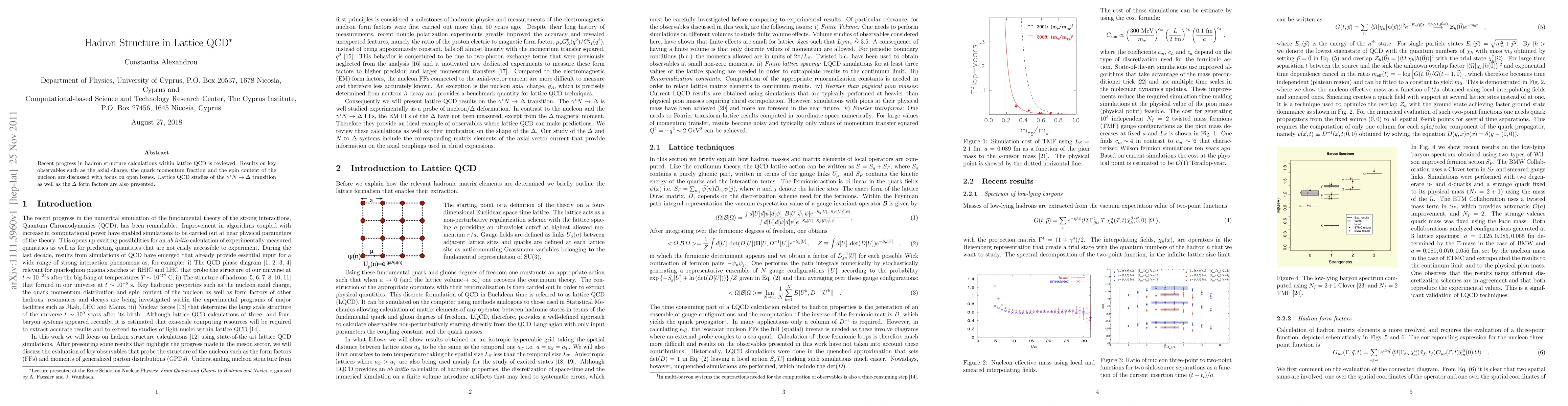 This paper reviews recent advancements in lattice QCD calculations for hadron structure, focusing on key observables like axial charge, quark momentum fraction, and nucleon spin content. It also discusses lattice QCD studies of the $\gamma^* N\rightarrow \Delta$ transition and $\Delta$ form factors, highlighting ongoing challenges.
