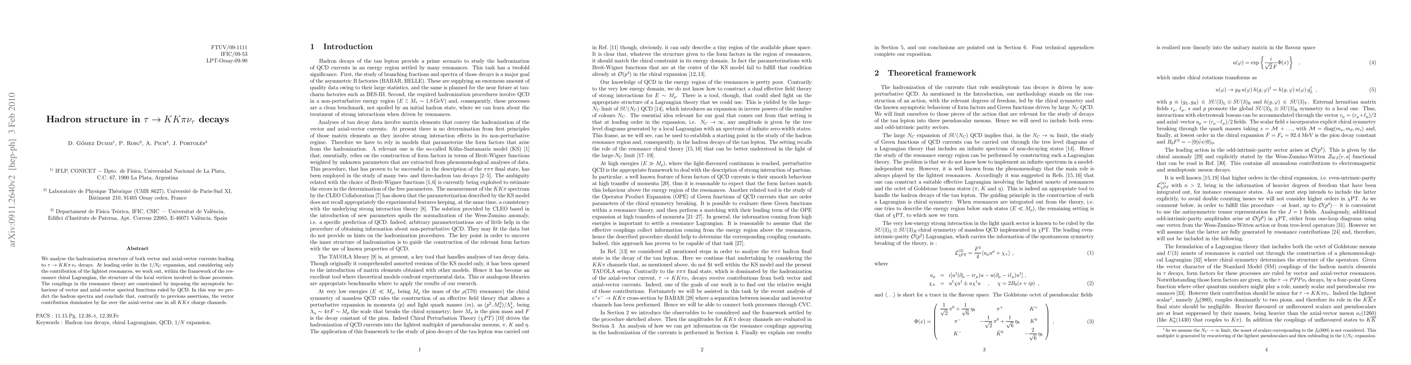 We analyse the hadronization structure of both vector and axial-vector currents leading to tau -> KKpi nu_tau decays. At leading order in the 1/Nc expansion, and considering only the contribution of the lightest resonances, we work out, within the framework of the resonance chiral Lagrangian, the structure of the local vertices involved in those processes. The couplings in the resonance theory are constrained by imposing the asymptotic behaviour of vector and axial-vector spectral functions ruled by QCD. In this way we predict the hadron spectra and conclude that, contrarily to previous assertions, the vector contribution dominates by far over the axial-vector one in all KKpi charge channels.
