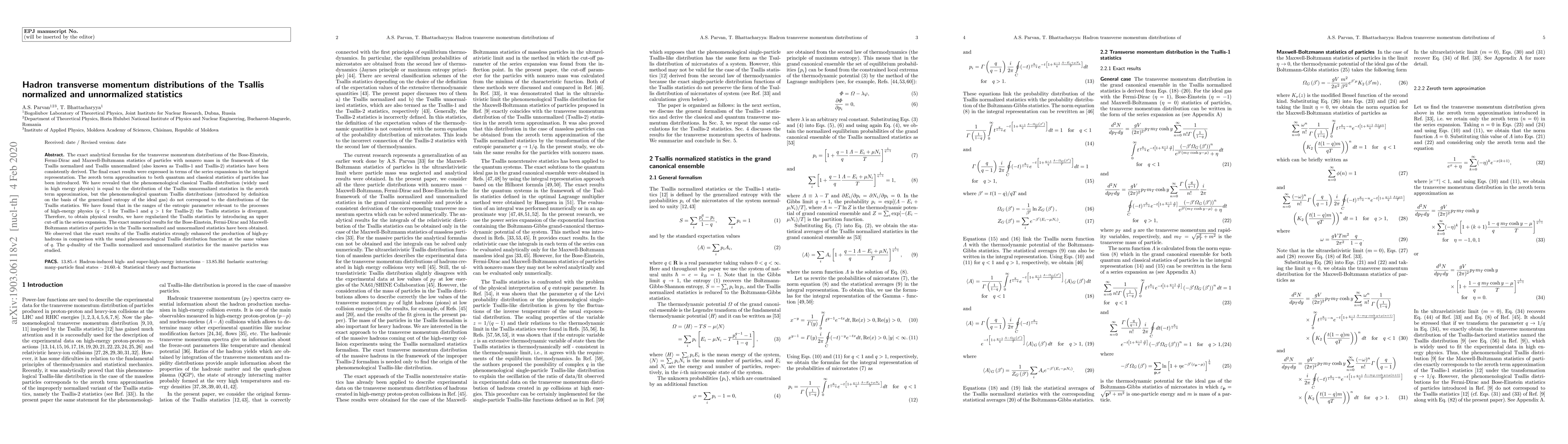 This paper derives exact analytical formulas for hadron transverse momentum distributions under Tsallis normalized and unnormalized statistics, revealing that the classical Tsallis distribution matches the unnormalized approximation but not the quantum one. It also discusses the divergence of Tsallis statistics in high-energy physics and proposes regularization to obtain physical results, showing enhanced high-$p_{T}$ hadron production compared to the usual Tsallis distribution.