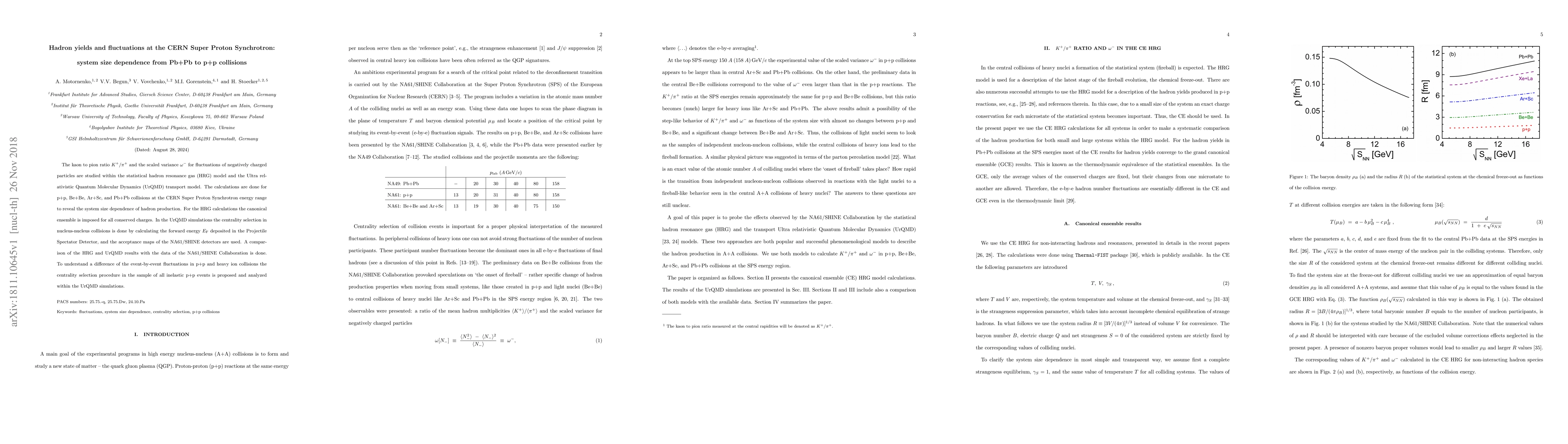 The kaon to pion ratio $K^+/\pi^+$ and the scaled variance $\omega^-$ for fluctuations of negatively charged particles are studied within the statistical hadron resonance gas (HRG) model and the Ultra relativistic Quantum Molecular Dynamics (UrQMD) transport model. The calculations are done for p+p, Be+Be, Ar+Sc, and Pb+Pb collisions at the CERN Super Proton Synchrotron energy range to reveal the system size dependence of hadron production. For the HRG calculations the canonical ensemble is imposed for all conserved charges. In the UrQMD simulations the centrality selection in nucleus-nucleus collisions is done by calculating the forward energy $E_{\rm F}$ deposited in the Projectile Spectator Detector, and the acceptance maps of the NA61/SHINE detectors are used. A comparison of the HRG and UrQMD results with the data of the NA61/SHINE Collaboration is done. To understand a difference of the event-by-event fluctuations in p+p and heavy ion collisions the centrality selection procedure in the sample of all inelastic p+p events is proposed and analyzed within the UrQMD simulations.