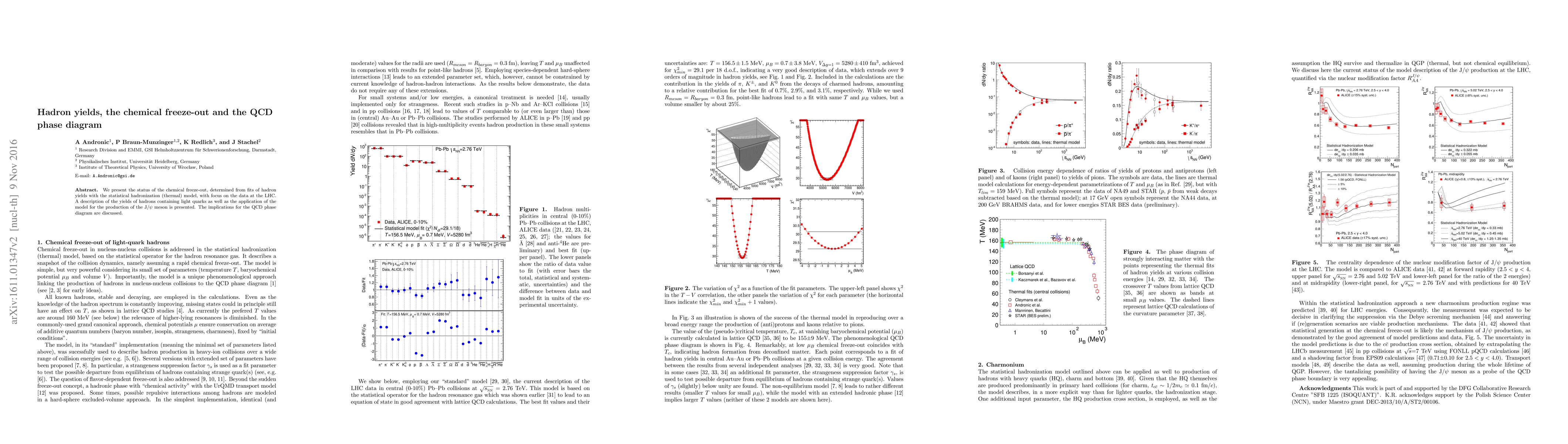 This paper analyzes hadron yields from the LHC using the statistical hadronization model to determine chemical freeze-out conditions, focusing on light quark hadrons and J/ψ meson production, and discusses the implications for the QCD phase diagram.