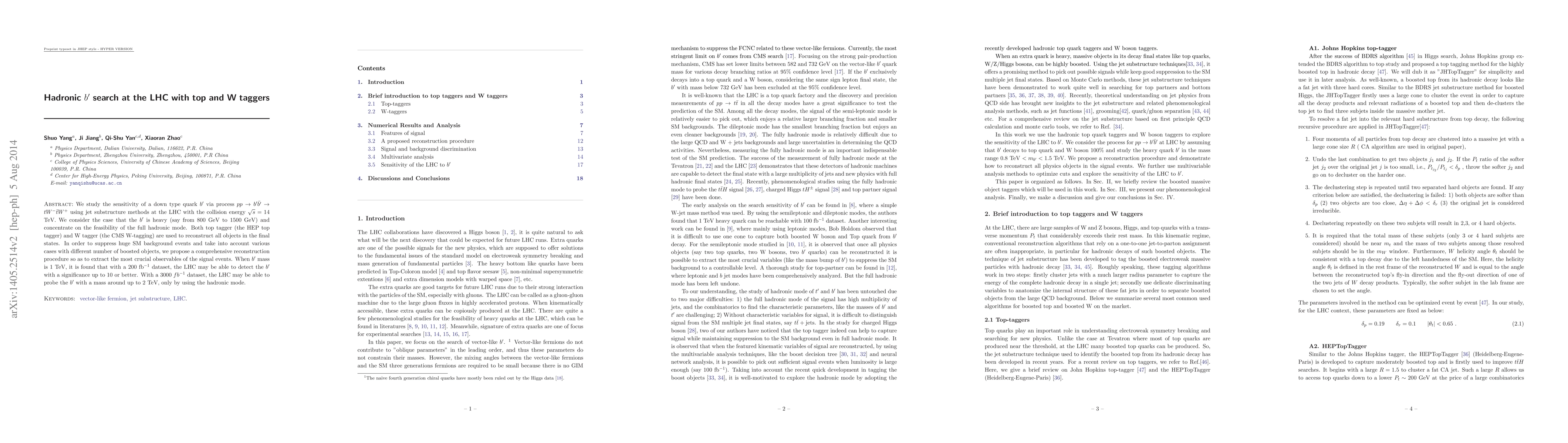 We study the sensitivity of a down type quark $b^{\prime}$ via process $pp\rightarrow b^{\prime}\bar{b^{\prime}} \rightarrow tW^-\bar{t}W^+$ using jet substructure methods at the LHC with the collision energy $\sqrt{s}=14$ TeV. We consider the case that the $b^\prime$ is heavy (say from 800 GeV to 1500 GeV) and concentrate on the feasibility of the full hadronic mode. Both top tagger (the HEP top tagger) and W tagger (the CMS W-tagging) are used to reconstruct all objects in the final states. In order to suppress huge SM background events and take into account various cases with different number of boosted objects, we propose a comprehensive reconstruction procedure so as to extract the most crucial observables of the signal events. When $b^\prime$ mass is 1 TeV, it is found that with a 200 fb$^{-1}$ dataset, the LHC may be able to detect the $b^\prime$ with a significance up to $10$ or better. With a 3000 $fb^{-1}$ dataset, the LHC may be able to probe the $b^\prime$ with a mass around up to 2 TeV, only by using the hadronic mode.