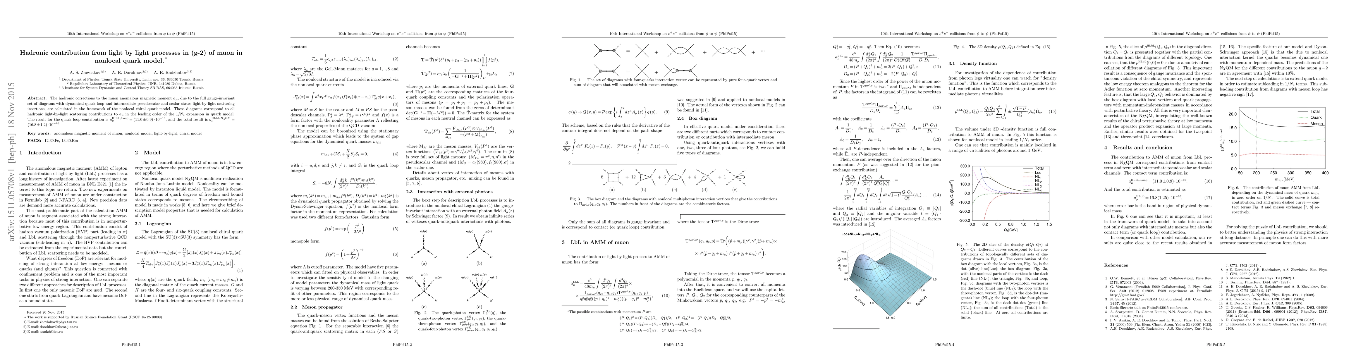 This paper calculates the hadronic light-by-light scattering contributions to the muon's anomalous magnetic moment using the nonlocal chiral quark model, yielding a result of $(16.8\pm1.2) \cdot 10^{-10}$ for the total contribution. The study focuses on gauge-invariant diagrams with dynamical quark loops and pseudoscalar and scalar states.