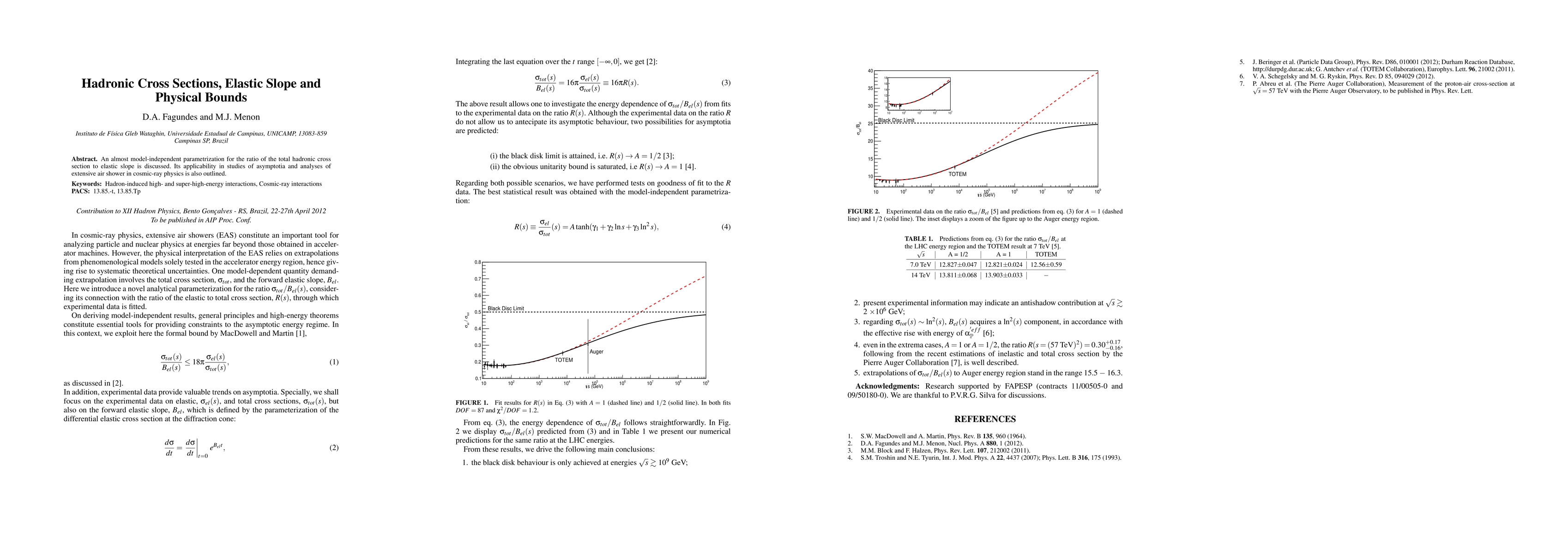 This paper presents a nearly model-independent parametrization for the ratio of total hadronic cross sections to elastic slope, emphasizing its utility in studying asymptotic behavior and analyzing extensive air showers in cosmic-ray physics.