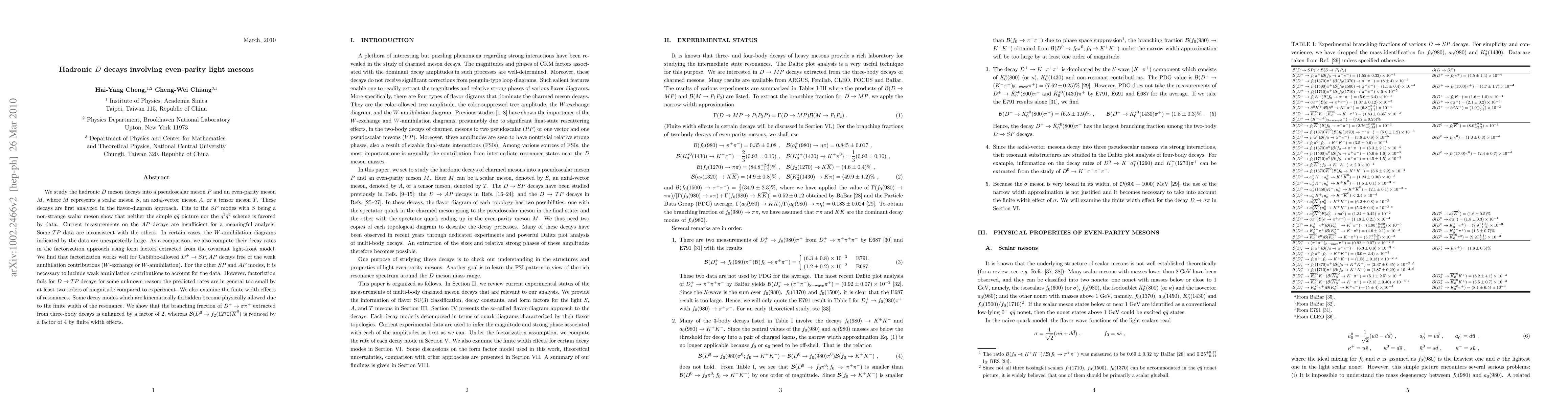This paper investigates hadronic D meson decays into a pseudoscalar and an even-parity meson, analyzing both flavor-diagram and factorization approaches. It finds that neither simple quark-antiquark nor quark-pair-antiquark schemes fit the data, and factorization works well for some decays but fails for tensor meson decays. Finite width effects significantly alter the branching fractions of certain decay modes.