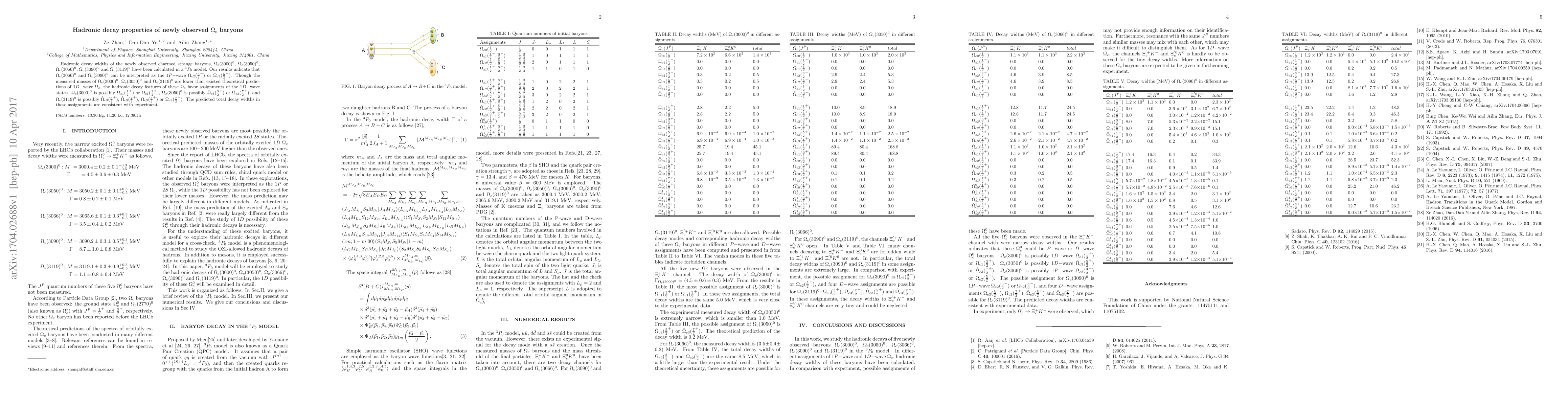 This paper investigates the hadronic decay properties of newly observed $\Omega_c$ baryons using a $^3P_0$ model. The study finds that $\Omega_c(3066)^0$ and $\Omega_c(3090)^0$ likely correspond to $1P-$wave $\Omega_{c2}$ states, while $\Omega_c(3000)^0$, $\Omega_c(3050)^0$, and $\Omega_c(3119)^0$ are tentatively assigned to $1D-$wave states, with predicted decay widths matching experimental data.