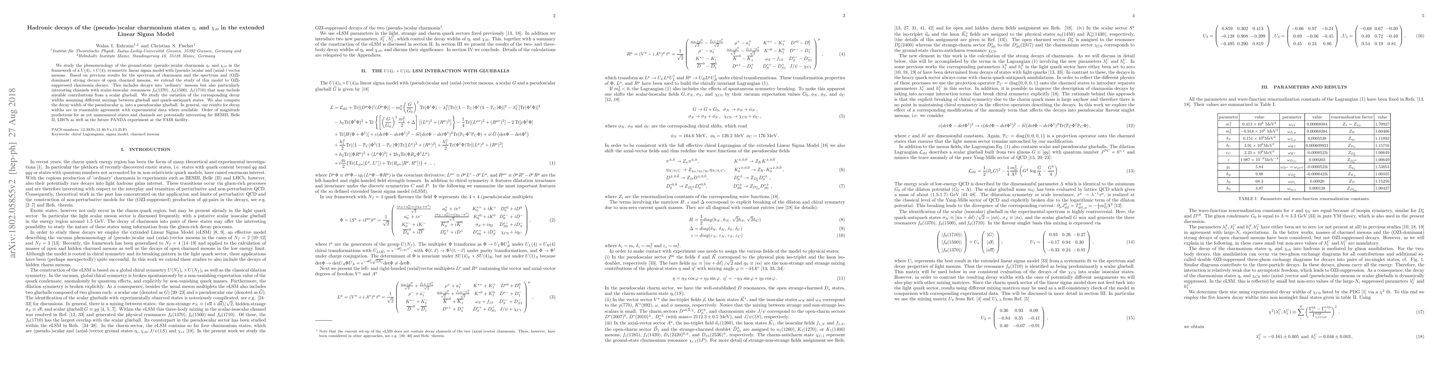 We study the phenomenology of the ground-state (pseudo-)scalar charmonia $\eta_c$ and $\chi_{c0}$ in the framework of a $U(4)_r \times U(4)_l$ symmetric linear sigma model with (pseudo-)scalar and (axial-) vector mesons. Based on previous results for the spectrum of charmonia and the spectrum and (OZI-dominant) strong decays of open charmed mesons, we extend the study of this model to OZI-suppressed charmonia decays. This includes decays into 'ordinary' mesons but also particularly interesting channels with scalar-isoscalar resonances $f_0(1370),\, f_0(1500),\, f_0(1710)$ that may include sizeable contributions from a scalar glueball. We study the variation of the corresponding decay widths assuming different mixings between glueball and quark-antiquark states. We also compute the decay width of the pseudoscalar $\eta_c$ into a pseudoscalar glueball. In general, our results for decay widths are in reasonable agreement with experimental data where available. Order of magnitude predictions for as yet unmeasured states and channels are potentially interesting for BESIII, Belle II, LHCb as well as the future PANDA experiment at the FAIR facility.