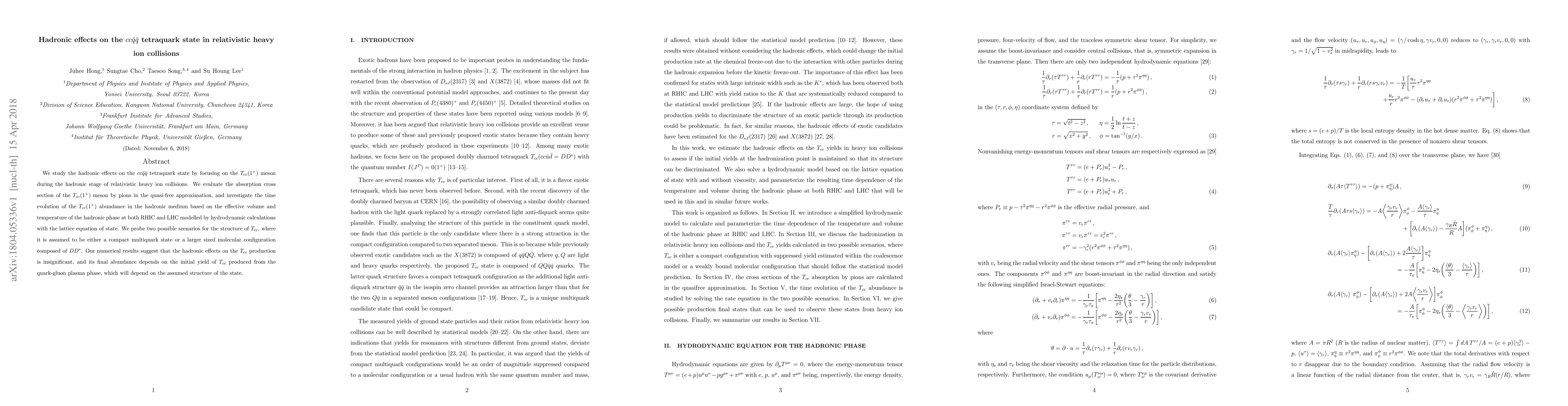 The study investigates the impact of hadronic effects on the T_cc(1^+) tetraquark during heavy ion collision hadronic stages. Utilizing quasi-free approximation and hydrodynamic calculations, it finds that hadronic effects on T_cc production are minimal, with the final abundance primarily determined by initial yields from the quark-gluon plasma phase, contingent on whether T_cc is a compact multiquark or a DD* molecular configuration.