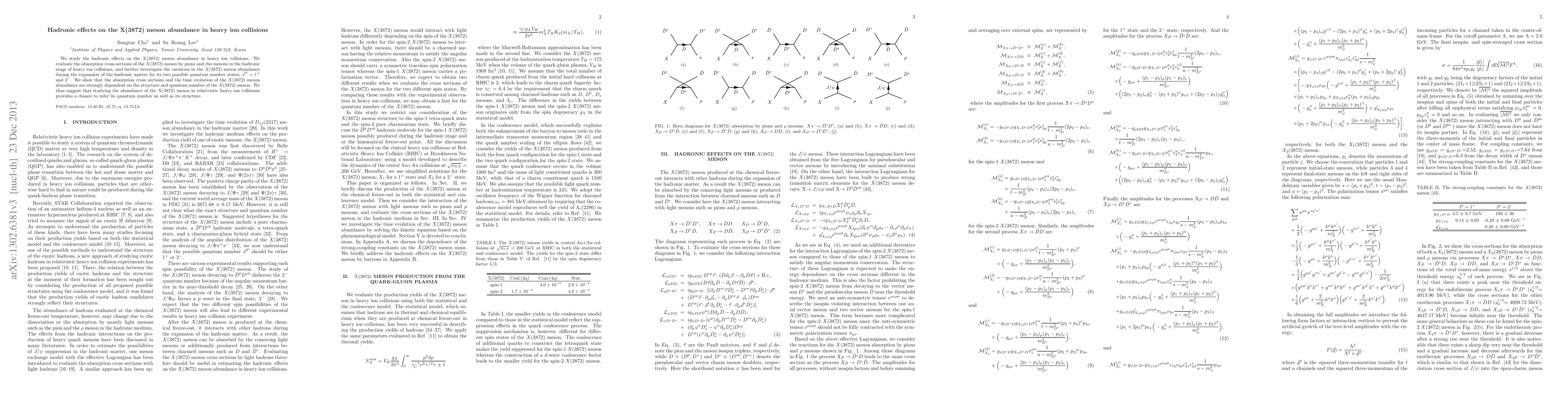 This study investigates how hadronic interactions affect the abundance of the X(3872) meson in heavy ion collisions, revealing that the absorption cross sections and the meson's abundance evolution are significantly influenced by its quantum numbers and structure. The findings suggest that analyzing X(3872) meson abundance in such collisions can help determine its quantum state and structure.