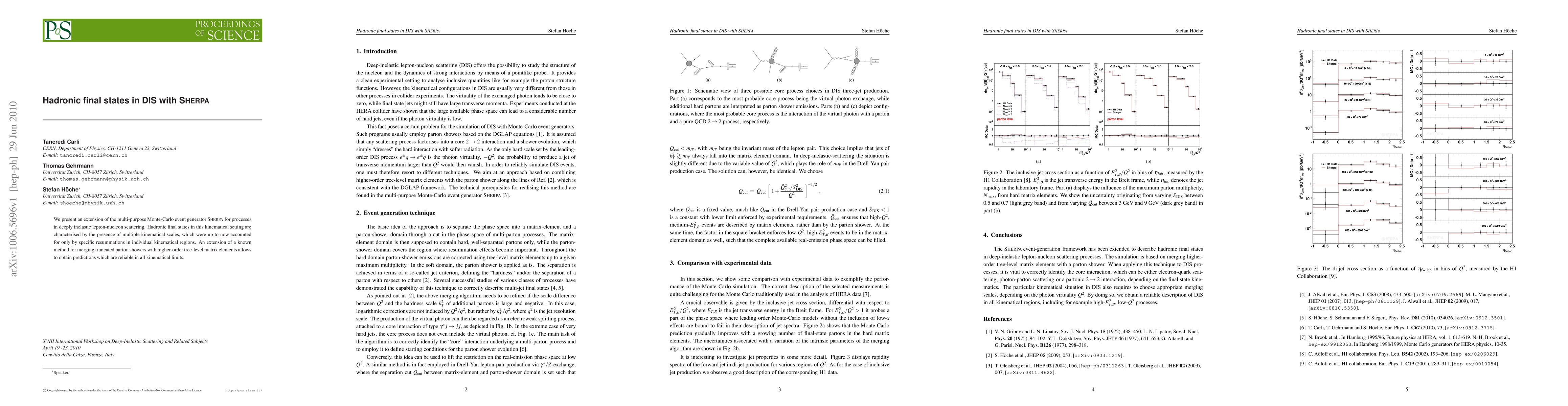 We present an extension of the multi-purpose Monte-Carlo event generator Sherpa for processes in deeply inelastic lepton-nucleon scattering. Hadronic final states in this kinematical setting are characterised by the presence of multiple kinematical scales, which were up to now accounted for only by specific resummations in individual kinematical regions. An extension of a known method for merging truncated parton showers with higher-order tree-level matrix elements allows to obtain predictions which are reliable in all kinematical limits.